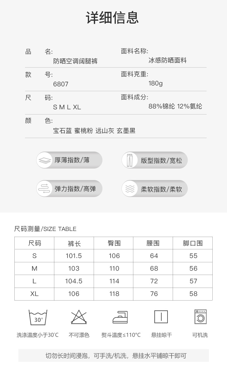 跃牌【健舞健美】系列新款夏季冰感防晒宽松直筒阔腿裤 6807