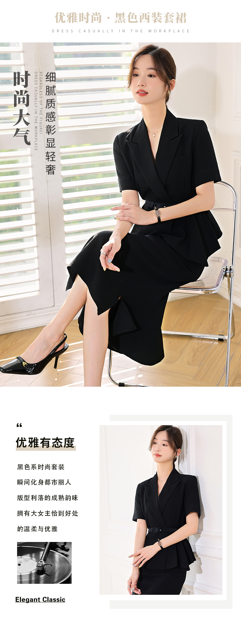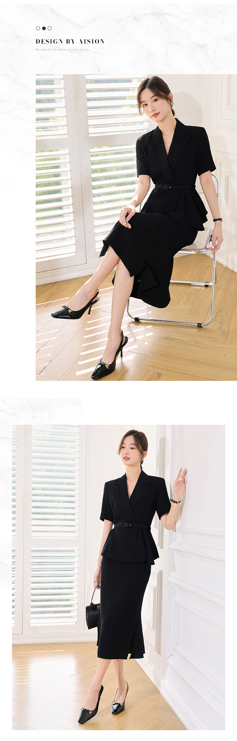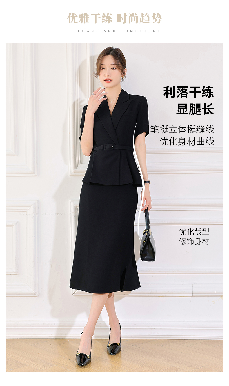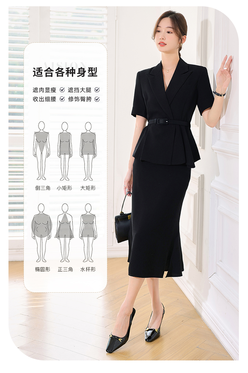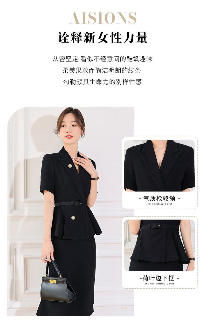 艾尚臣黑色西装两件套气质女神范收腰显瘦夏季新款酒店经理工作服