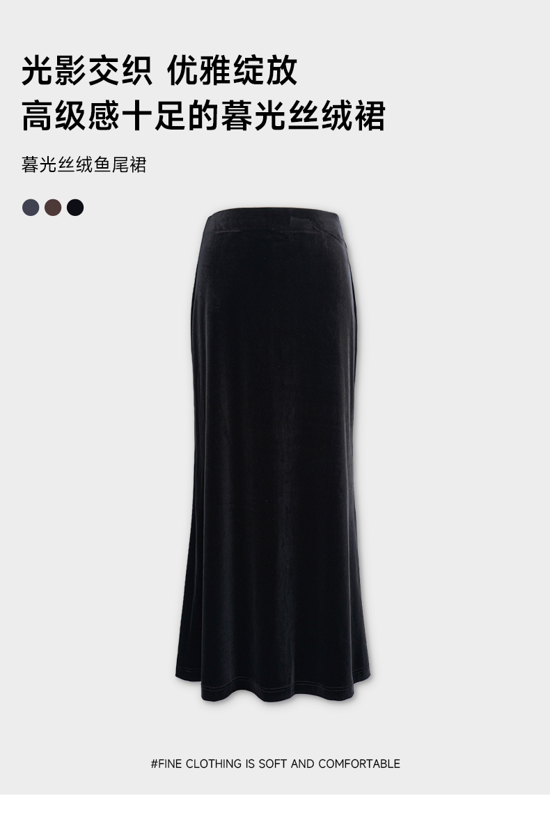 上半部分做高腰包臀设计,自然贴合的线条,裙围从大腿往下又逐渐放开,呈现俏皮小鱼尾状,裙长在89cm上下,刚好盖过小腿肚,衬托修长的双腿。定制高弹腰头,舒适又不失精致。光泽自然,流动又星光点点,更平添了精致轻奢感。