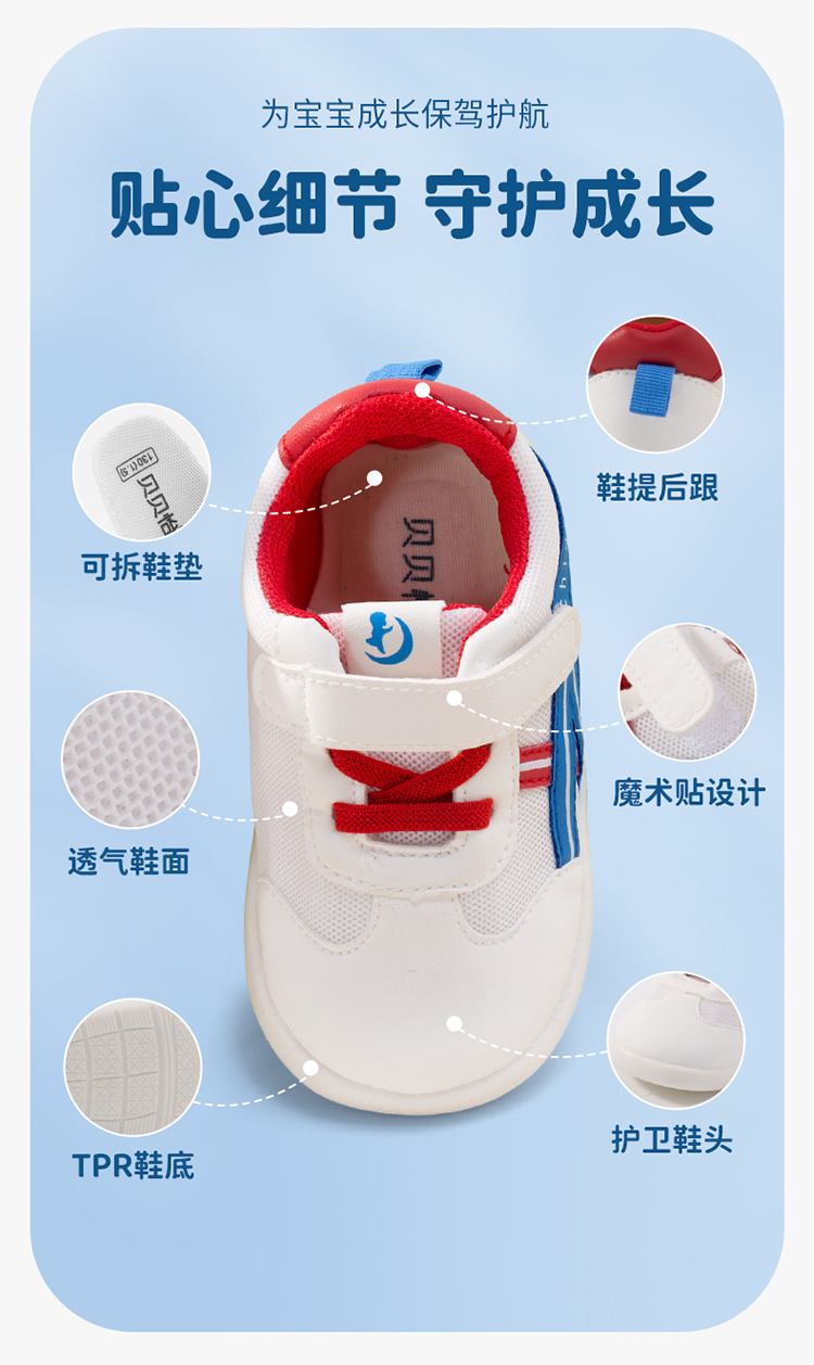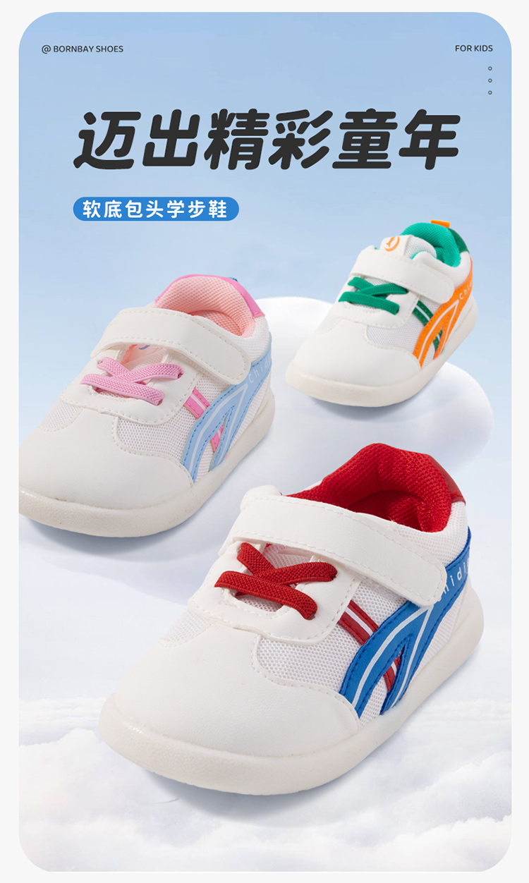 贝贝怡童鞋男女童软底包头学步鞋春秋新款网面透气防滑宝宝鞋233X477