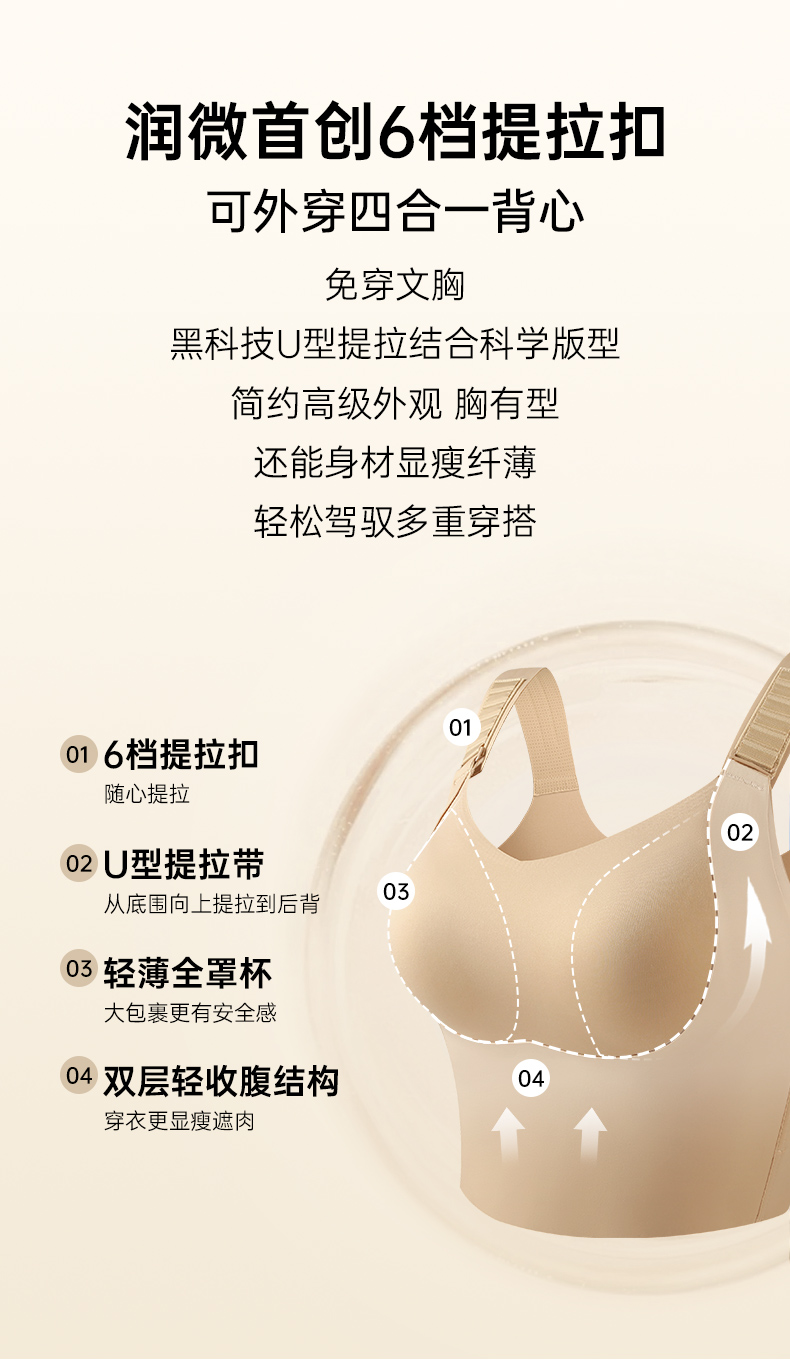 C2-💗【A-D杯】【全罩圆润款,不显小】【智能调节双专利款】【含鱼子酱精油美胸面料】润微专利阶梯智控扣+专利提拉带+ 6档精准提拉扣 【有大胸显小需求别买,此款显圆不显小】提拉任意提 背心