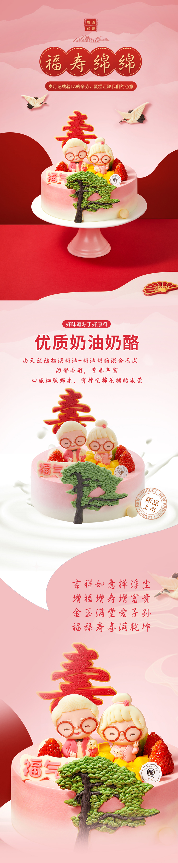福寿绵绵2磅乳酪动物奶油蛋糕,100%新鲜现做
