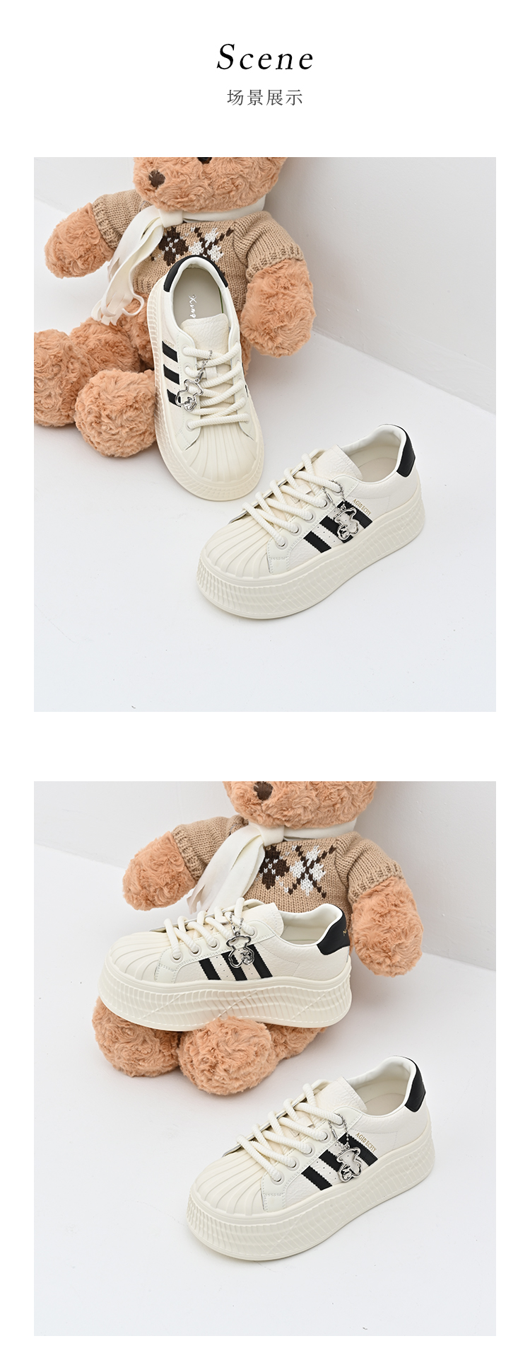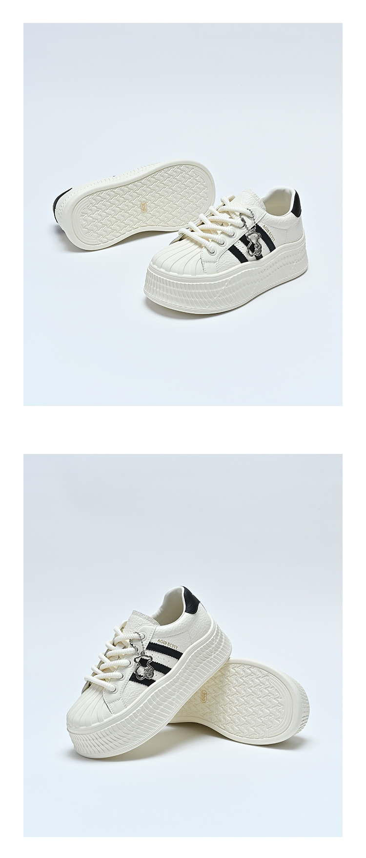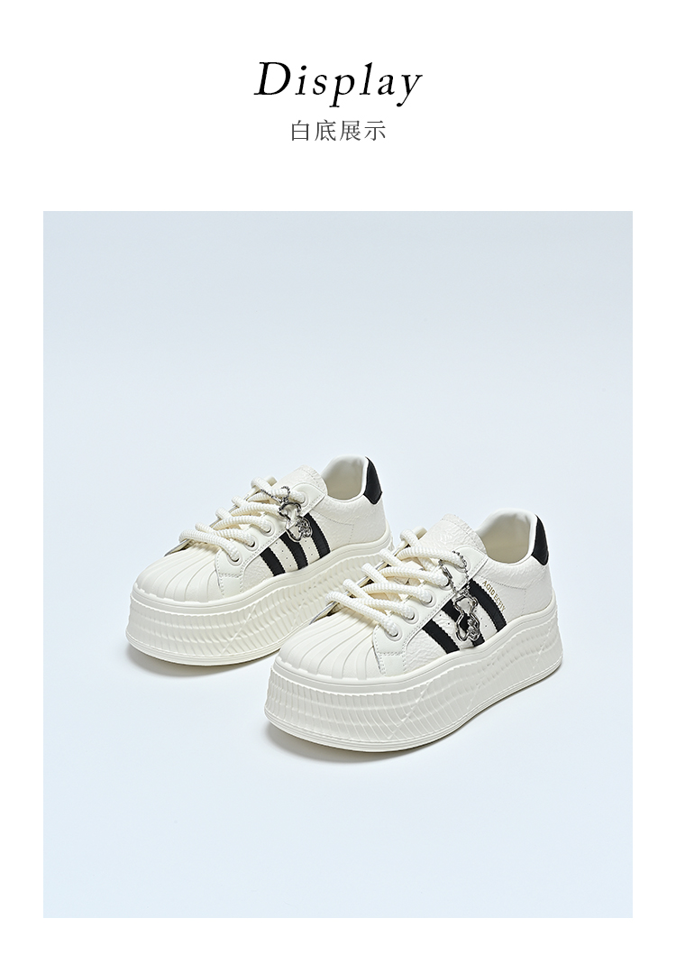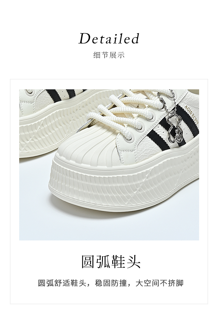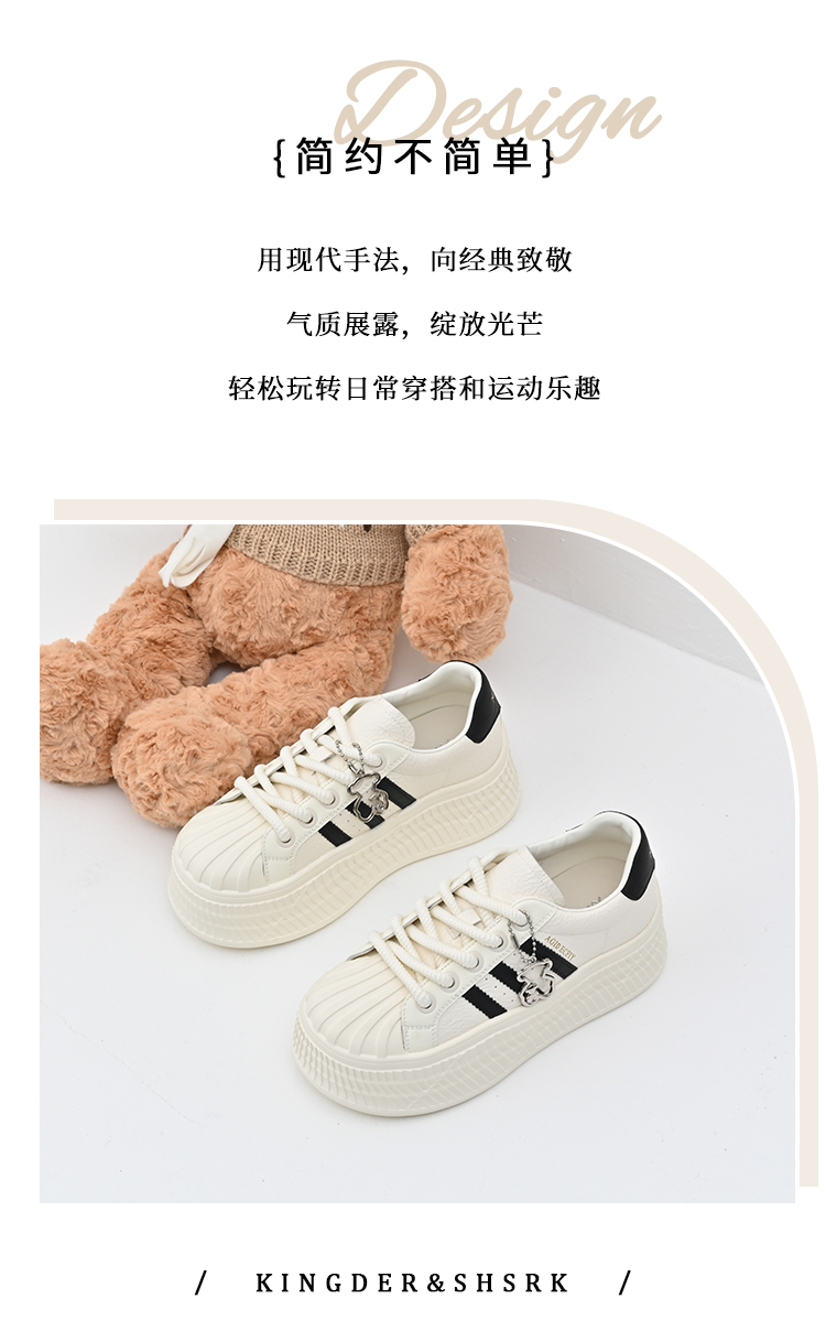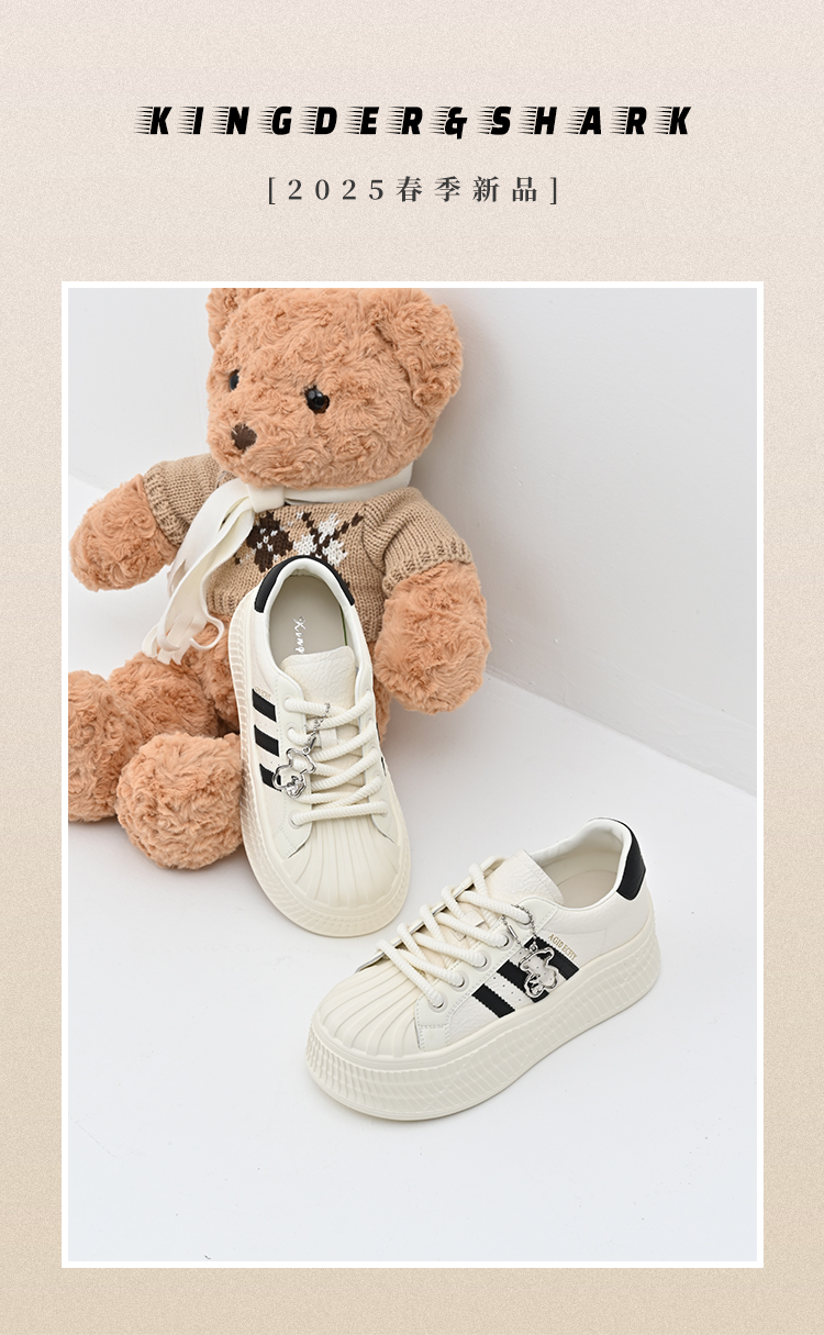 经典鲨女鞋2025年春季新款贝壳头时尚韩版拼色休闲厚底小白鞋KW142-517051