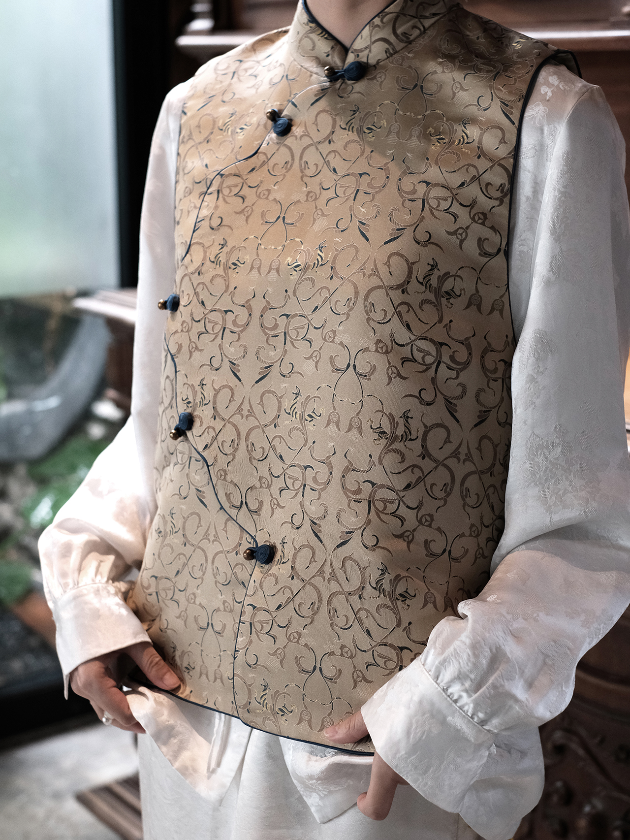 盛唐牡丹盛奢系列| 限量款| 高货-真丝宋锦卷草龙纹花瓣马甲(特殊商品不退不换)