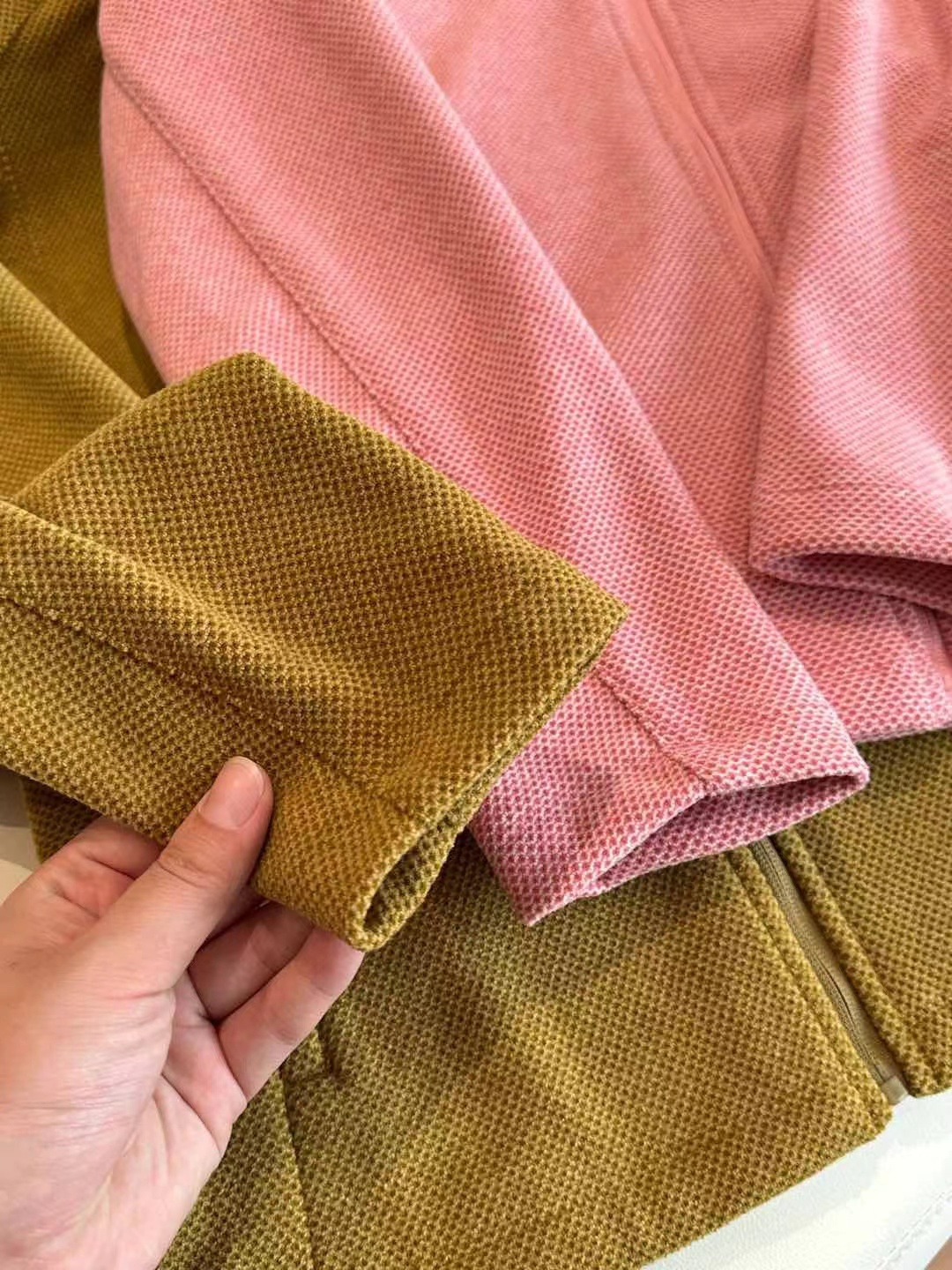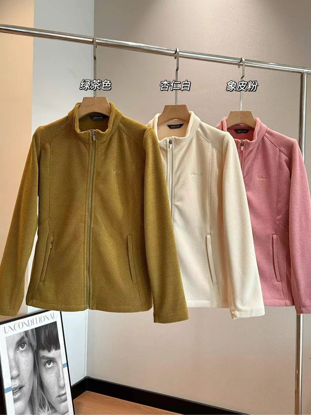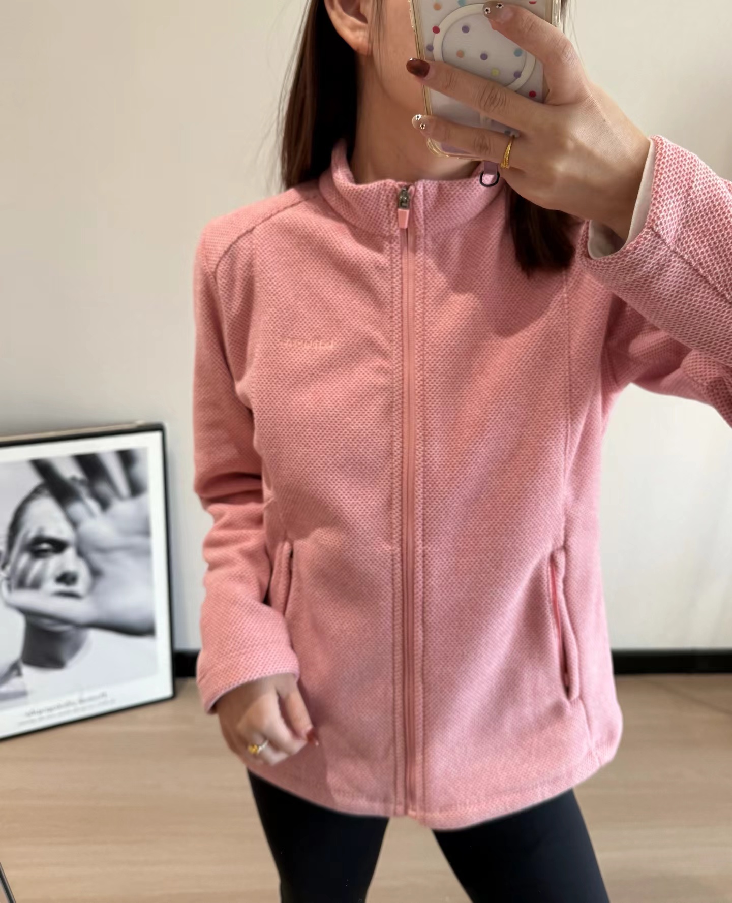 女款户外通勤保暖软壳抓绒衣立领外套,蜂巢六边形蓄热结构比普通抓绒衣保温效果高30%户外通勤都可以,单穿或者做内胆都OK,很实穿的款一衣穿三季!!!这款外套不仅是一件保暖层,更是一件可独立穿搭的时尚单品。设计团队从阿尔卑斯山间徒步者的实际需求出发,融合都市通勤场景,打造全场景适配的jing致细节。有修身显瘦的藏肉空间,合身有型不松垮,上身完全没有紧绷束缚感,穿起来还很显瘦有型,单穿做外套,中层做保暖,实穿性真的没得说!立体剪裁系统,采用人体工学3D立体剪裁,肩线微落,袖长适中,活动时无束缚感,同时腰部两侧和肩部都是拼接的优化廓形,避免传统抓绒的“膨胀感”,上身利落有型。双侧斜插拉链口袋,深度合理,保暖双手的同时安全收纳手机、钥匙;左胸logo刺绣,低调彰显身份。加高小立领设计,拉满拉链严实挡风,拉链门襟处做工走线jing致,平整服帖,定制拉链齿轮紧密,顺滑不卡顿,穿脱方便,增强实穿性。肩袖剪裁利落有型,一点都不软塌,反而更显精气神,胸前同色系logo刺绣,jing致低调有辨识度,平整袖口底边,细致缝线,整齐美观,内外走线都很利落,拷边线迹工整均匀,瞬间提升品质感。蓄热系统——会“呼吸”的温暖灵感源自蜂巢的六边形立体结构,通过高密度三维编织工艺,形成无数微小空气仓,有效锁住体温,实现高效保温。其热阻值较普通抓绒提升约30%,加捻抗起球纱线,提升耐磨性与抗风性能。