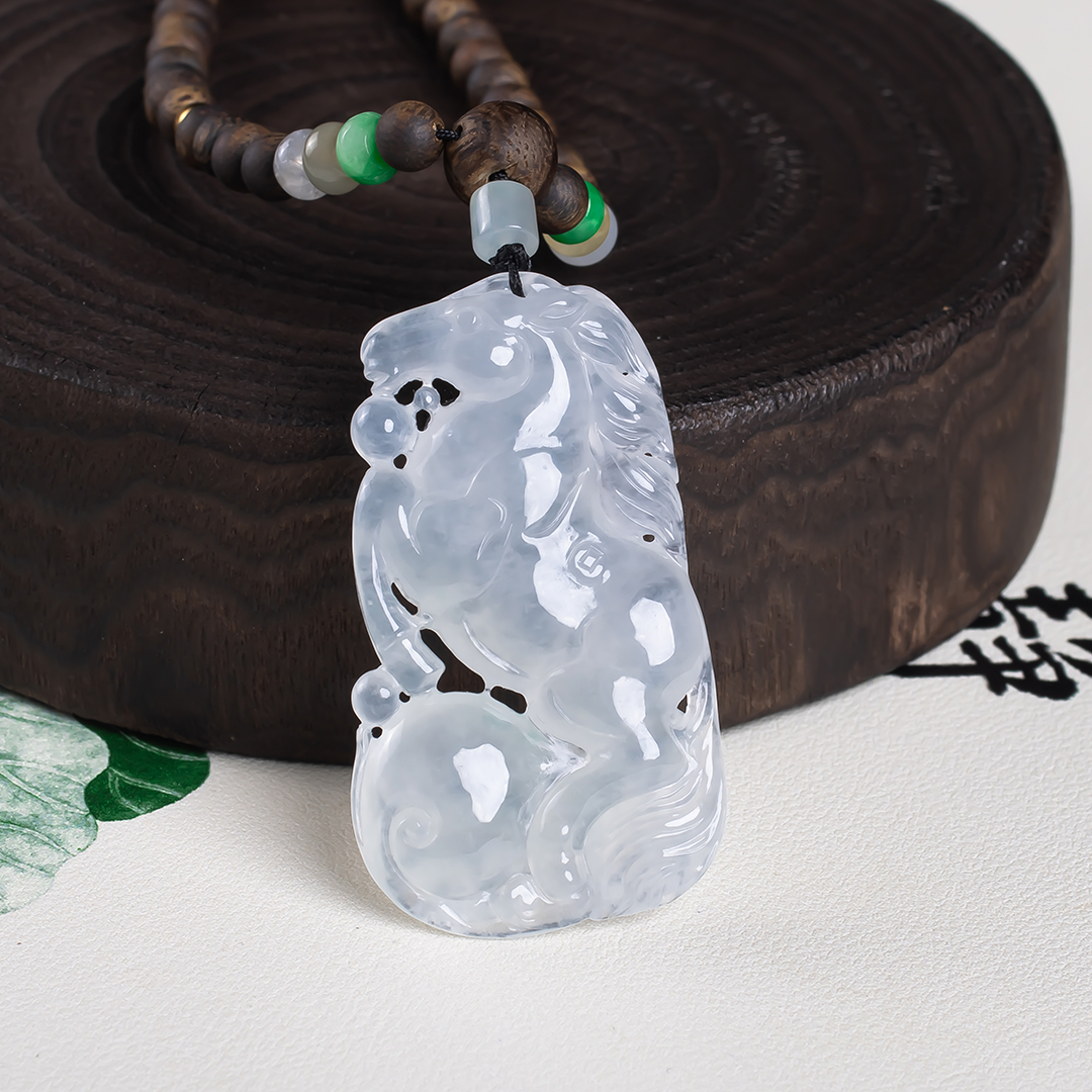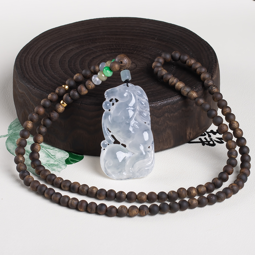 xy0659沉香+冰种翡翠马挂件,天然沉香约5.3mm,原色原味,香味自然清甜,冰种的翡翠生肖马,冰透无瑕,马到成功,马年大吉!