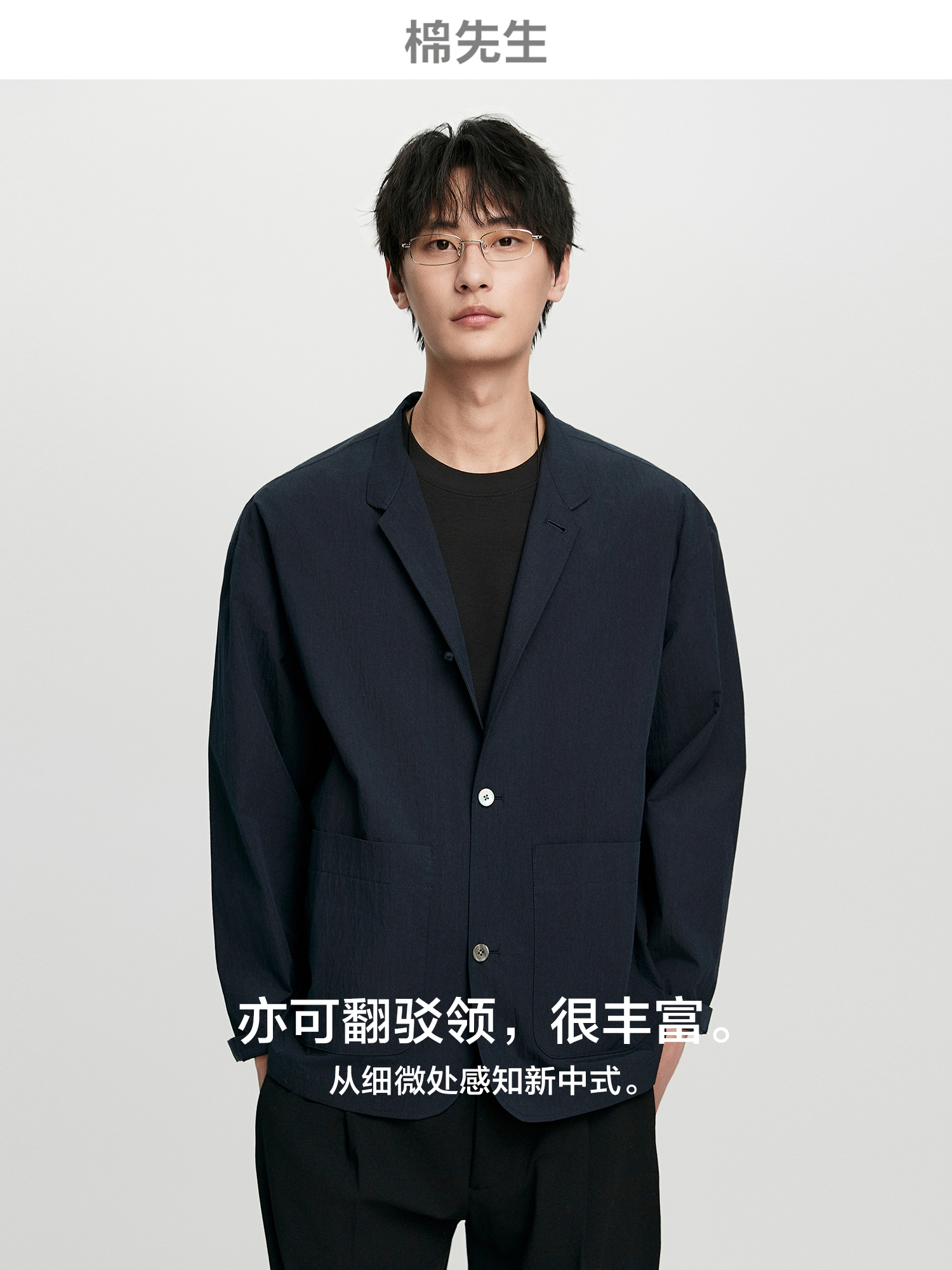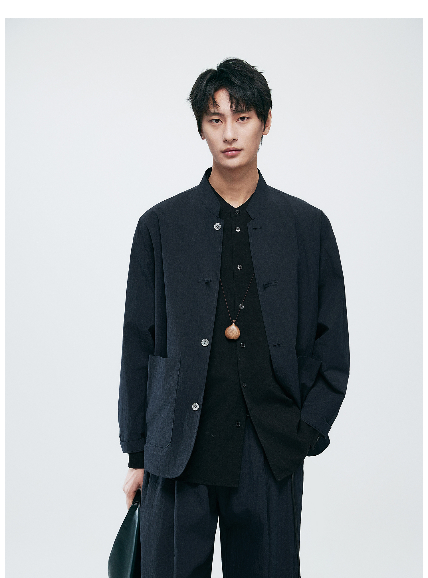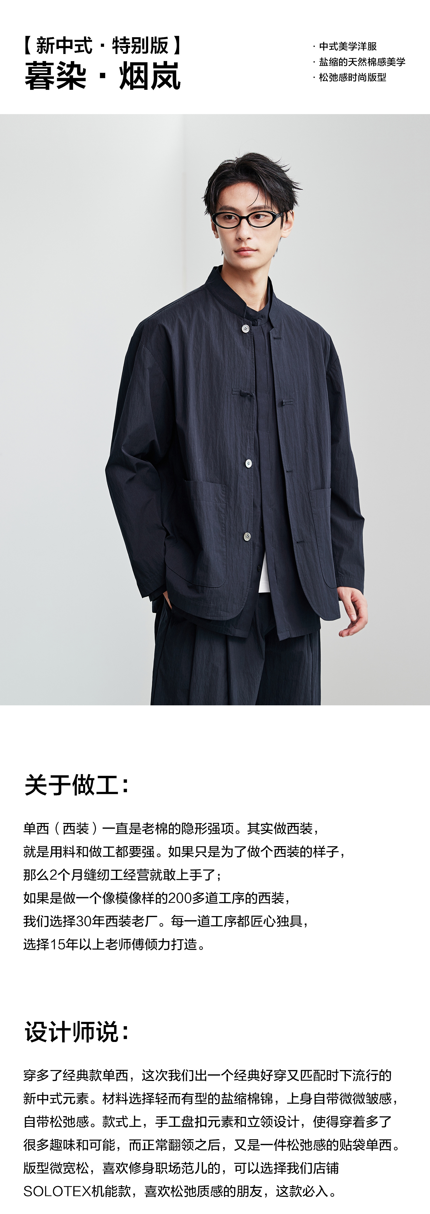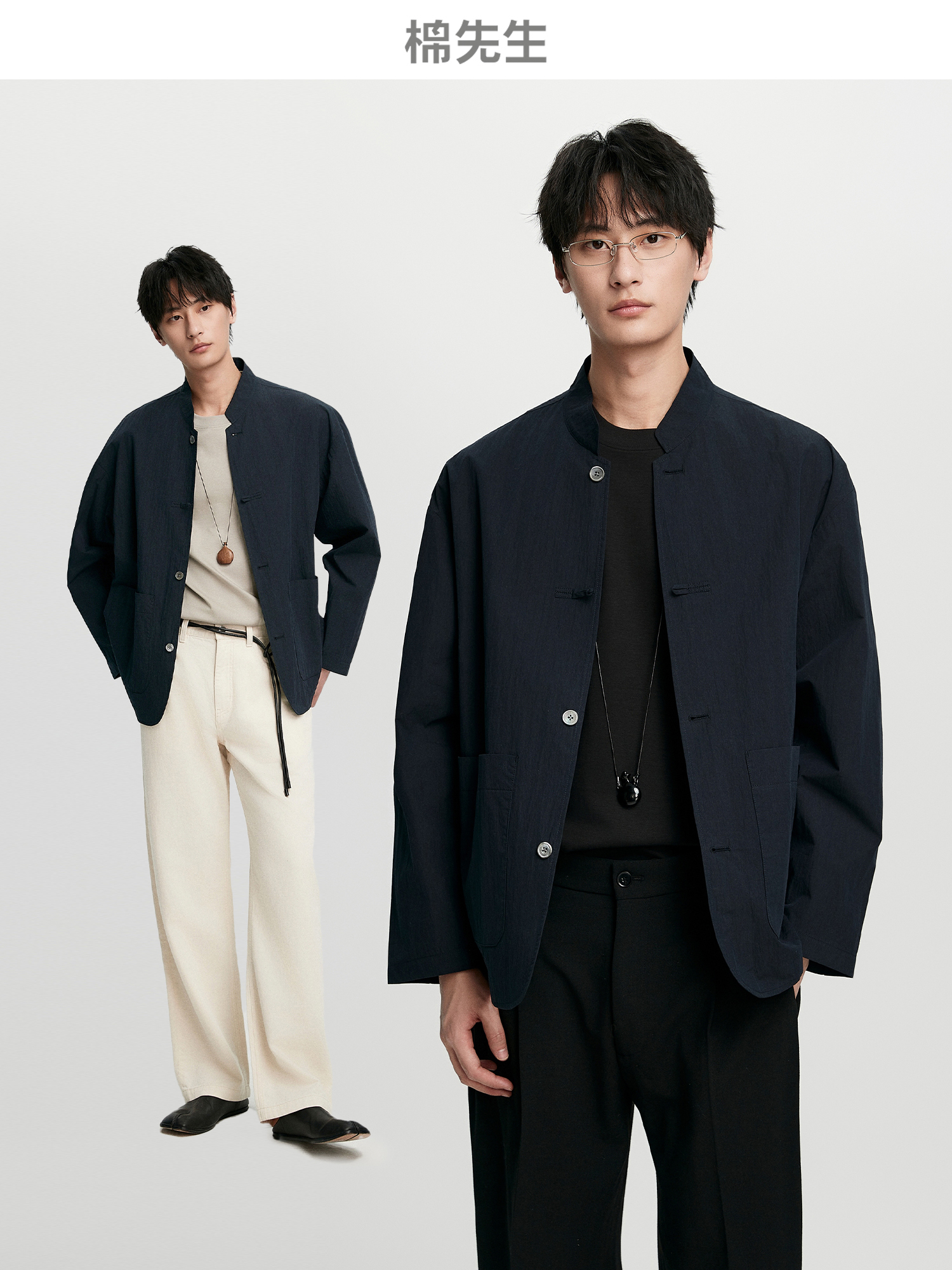 棉仓362812003-【变调中式】5系盐缩棉锦秋季立领新中式男士休闲西服外套