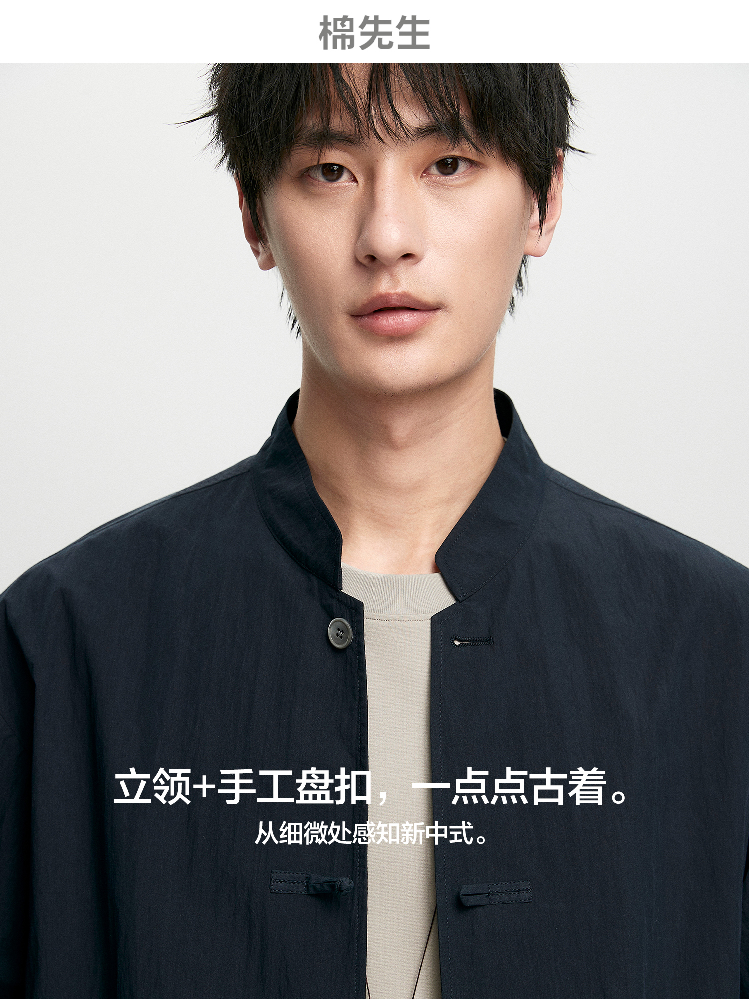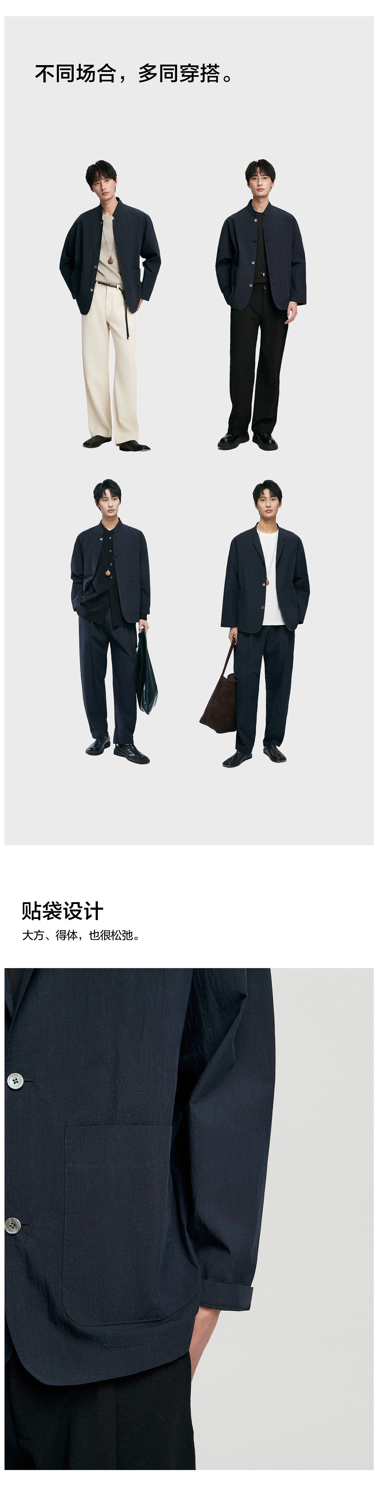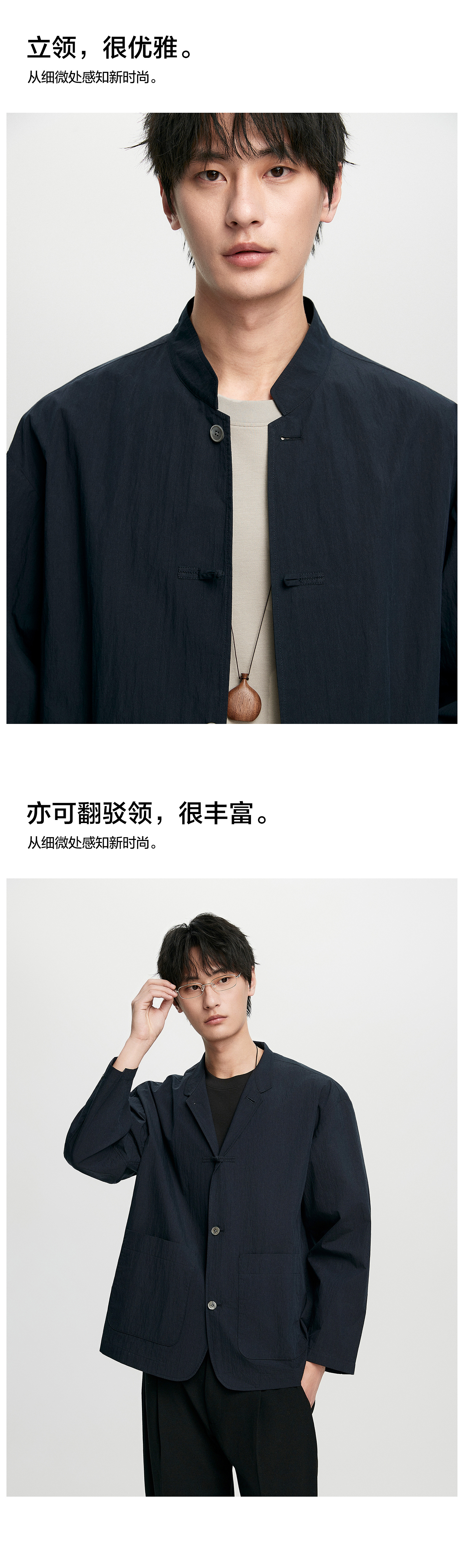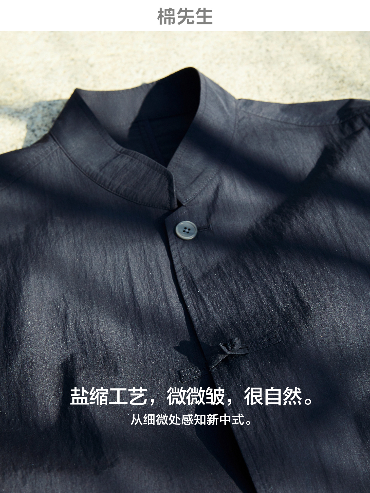 棉仓362812003-【变调中式】5系盐缩棉锦秋季立领新中式男士休闲西服外套