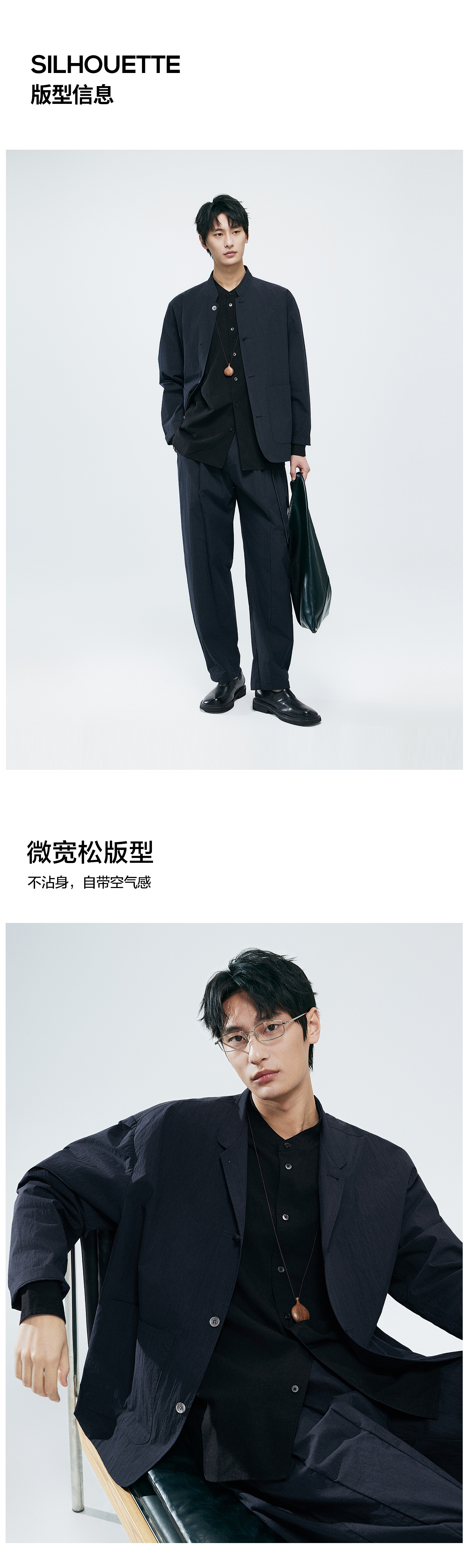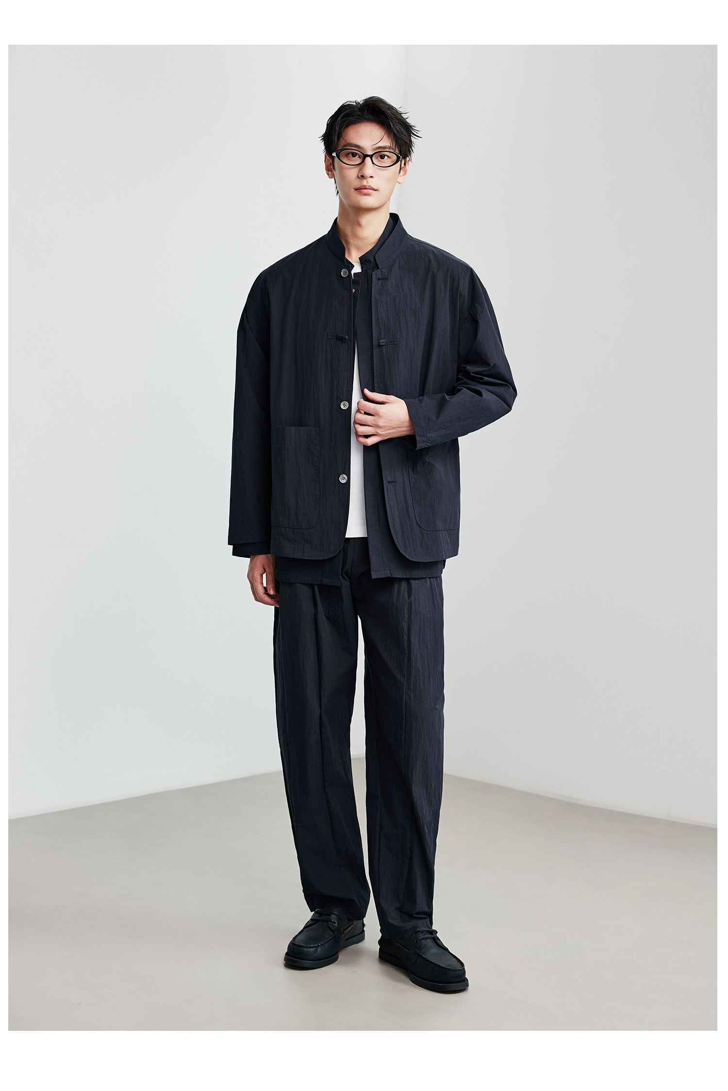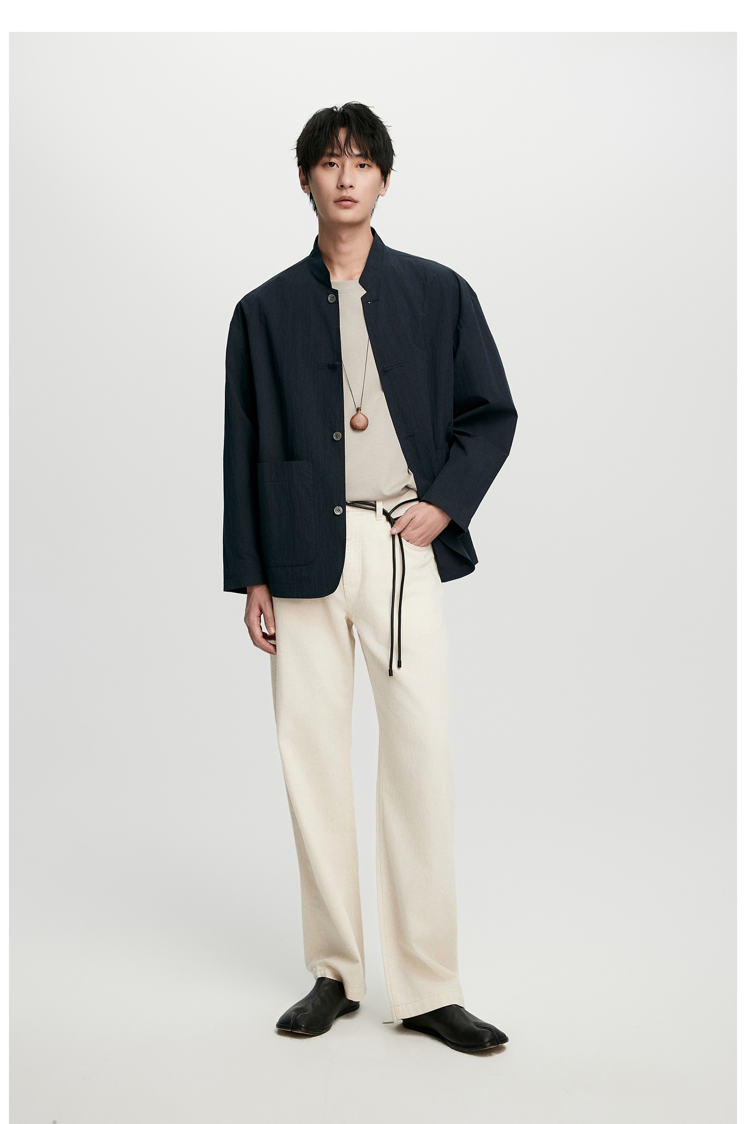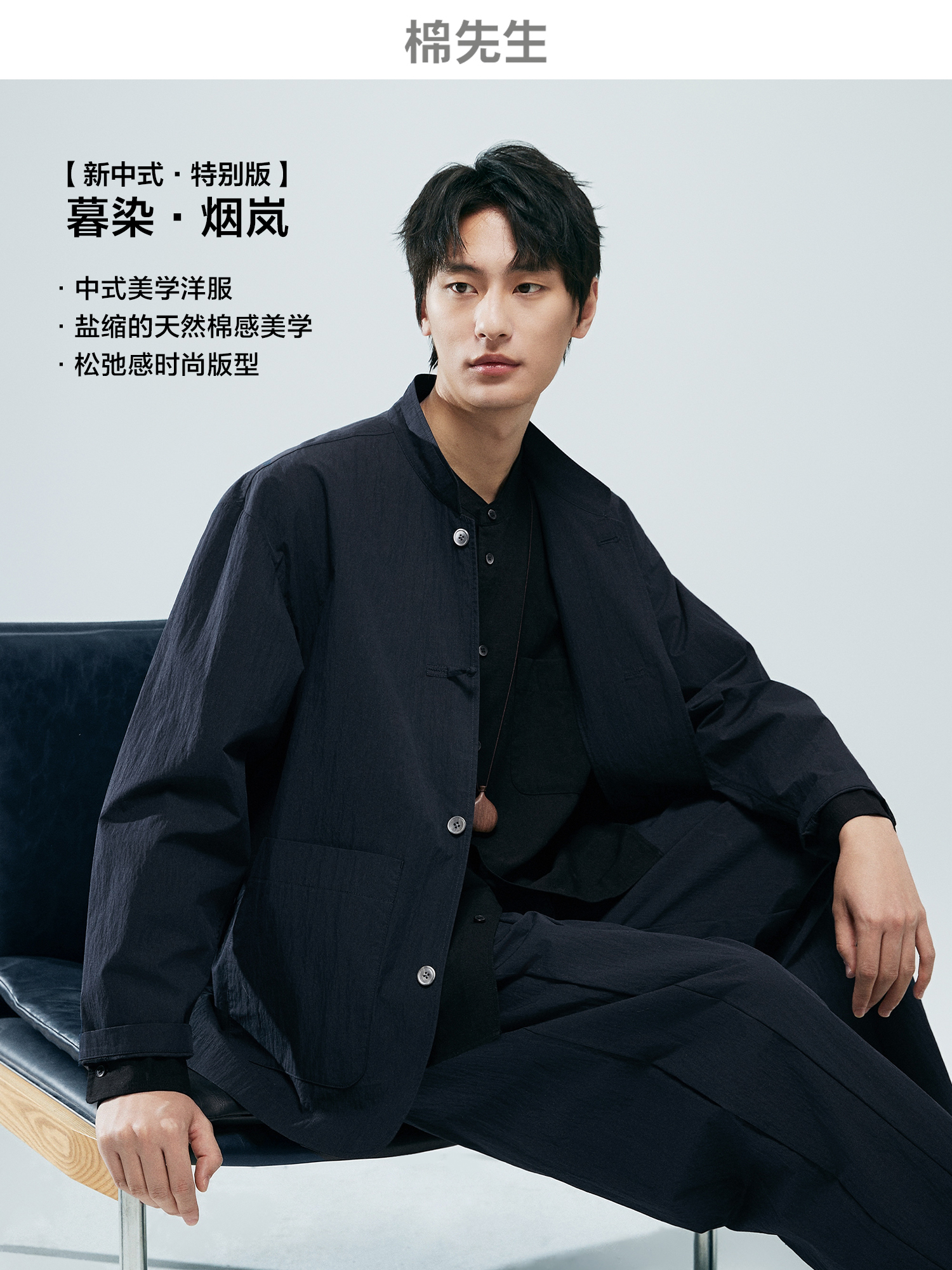 棉仓362812003-【变调中式】5系盐缩棉锦秋季立领新中式男士休闲西服外套