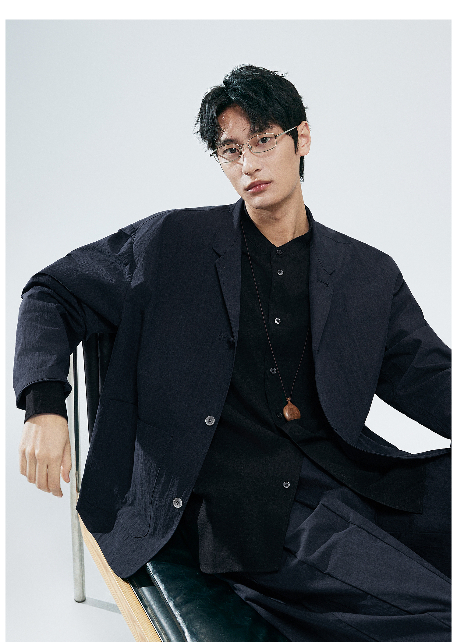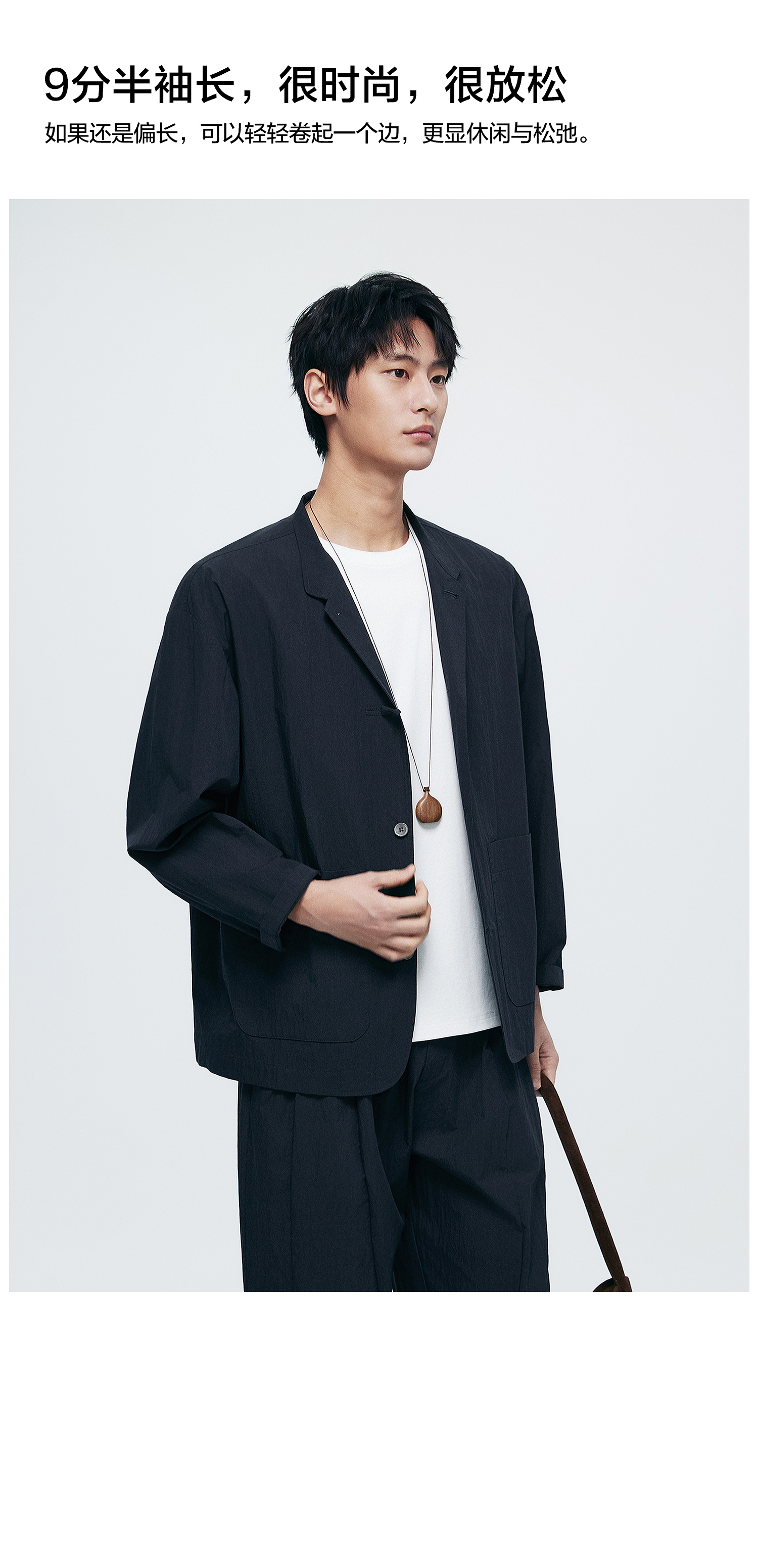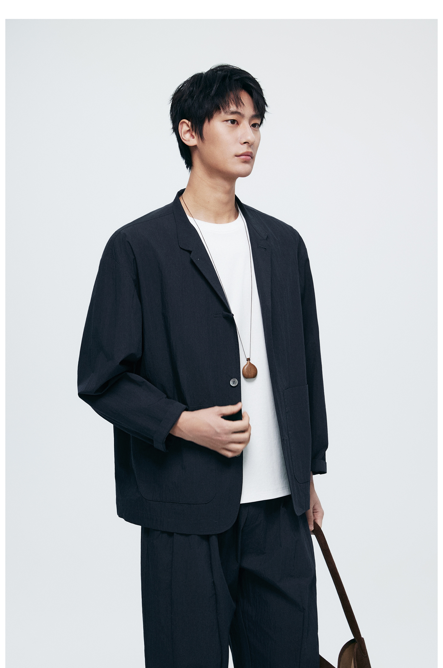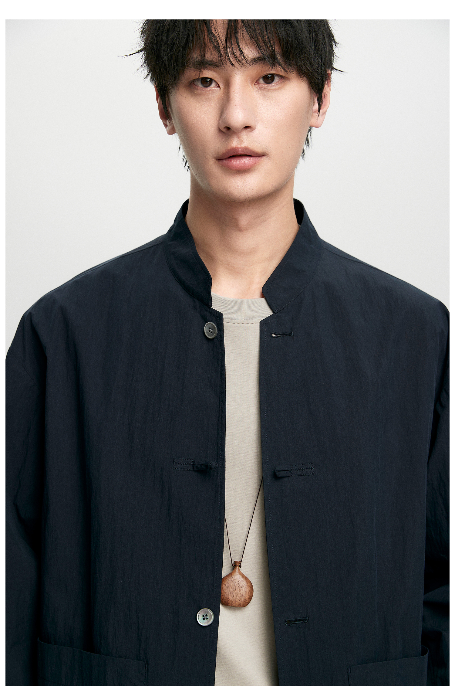 棉仓362812003-【变调中式】5系盐缩棉锦秋季立领新中式男士休闲西服外套