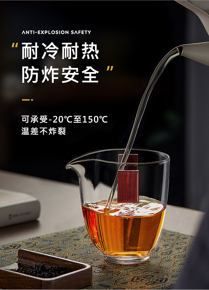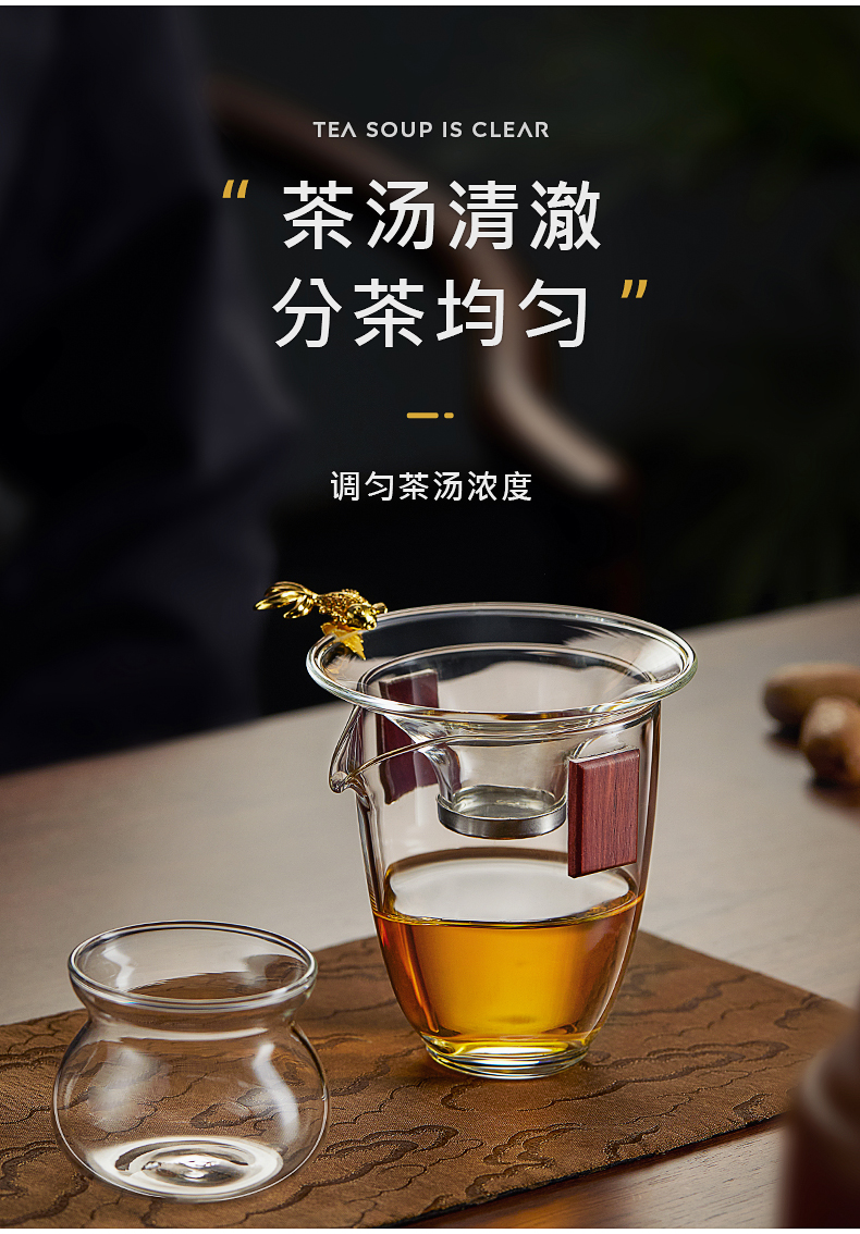 永利汇玻璃公道杯茶漏一体耐热日式功夫茶具茶水分离茶滤木片公杯