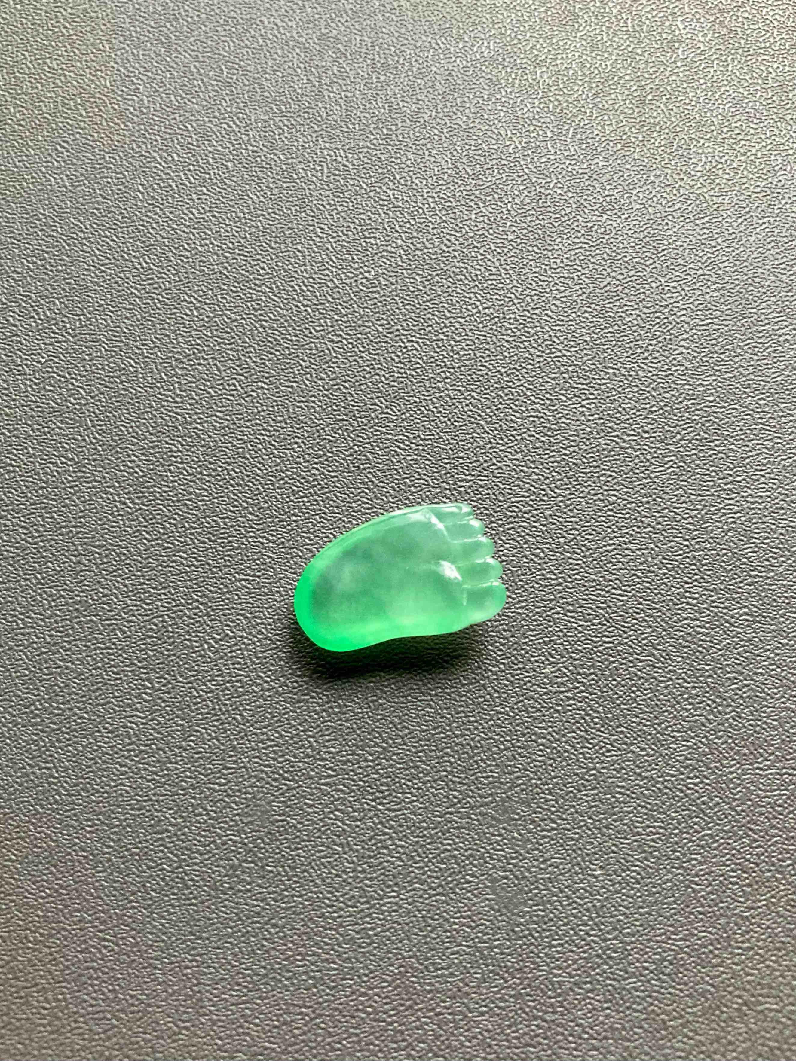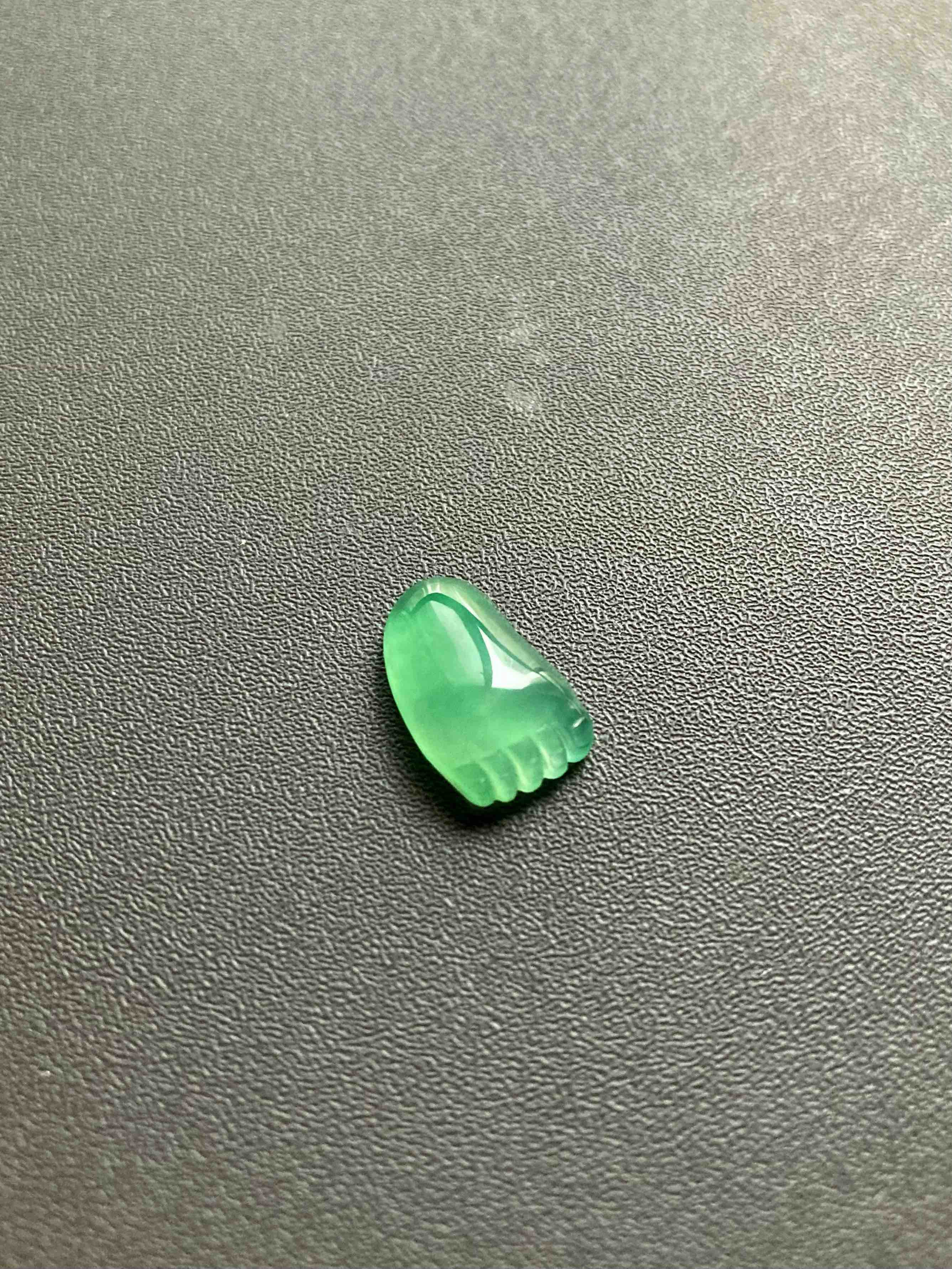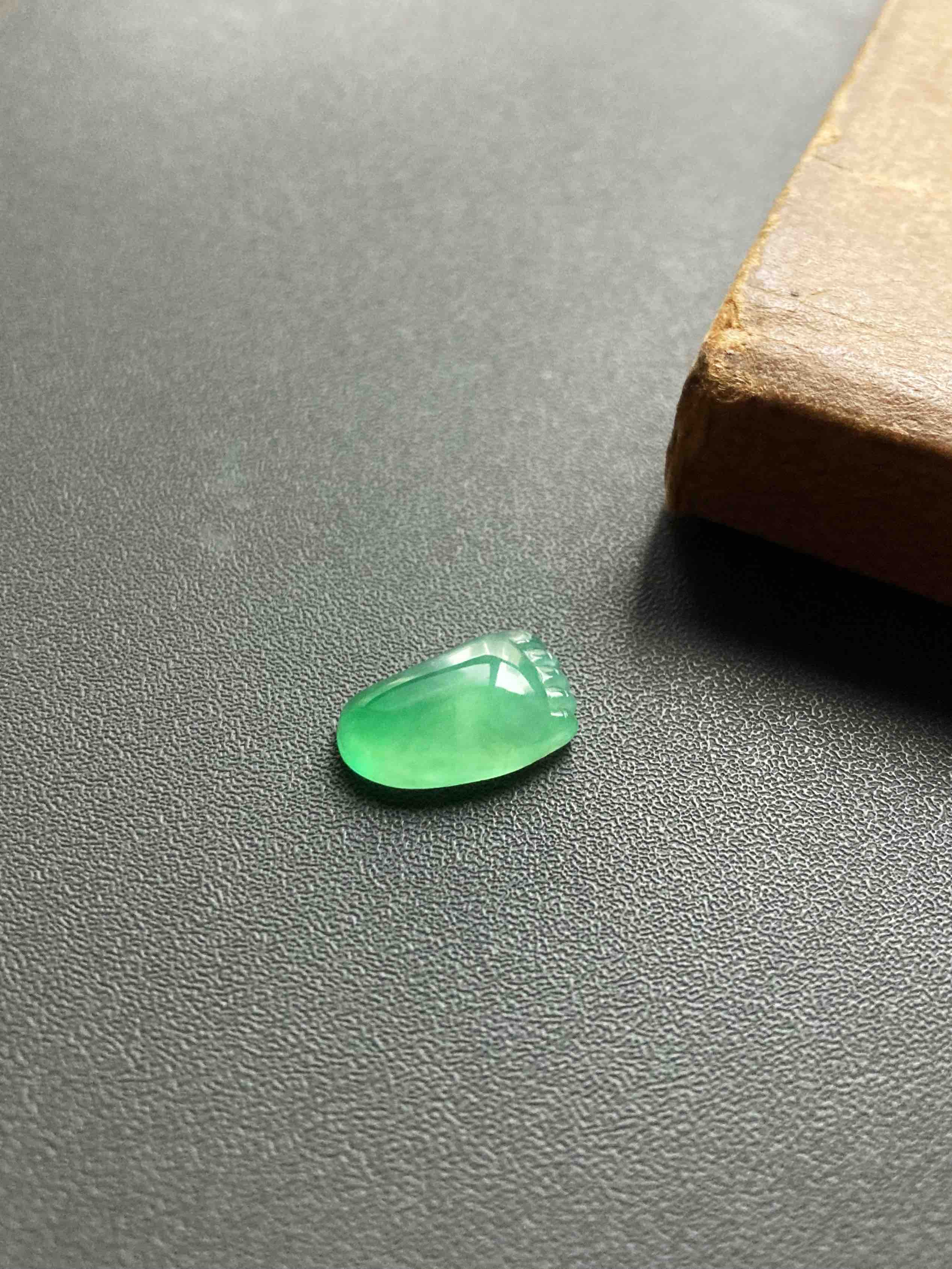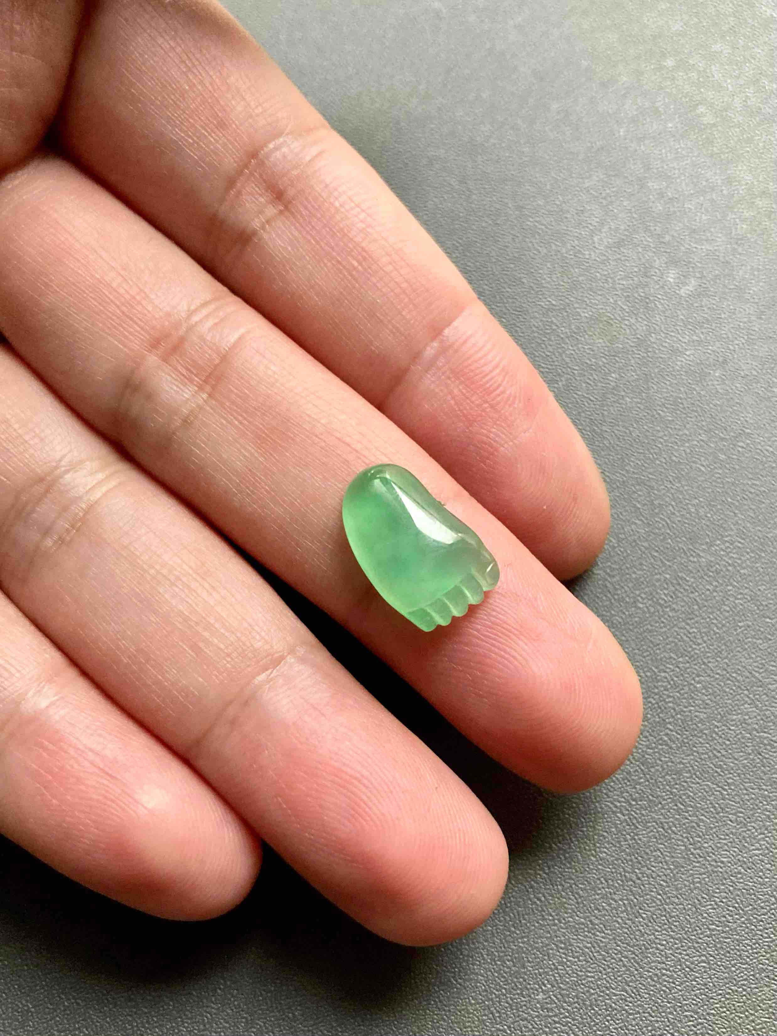 不可多得的好东西,冰种阳绿翡翠知足常乐,种色俱佳,阳绿艳丽,种水晶莹剔透,圆润饱满,雕刻精美,实在太漂亮了,侧面有点石纹藏得很好,最重要是只要小四价位,超划算,强烈推荐,14.7×9.3×4.6mm