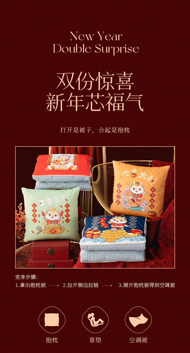 多喜爱 美眠康 吉祥抱枕被(大吉大利、平安喜乐万事如意、鱼跃龙门)