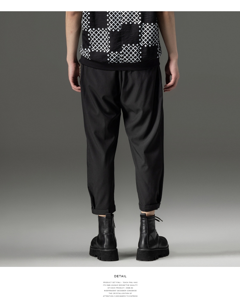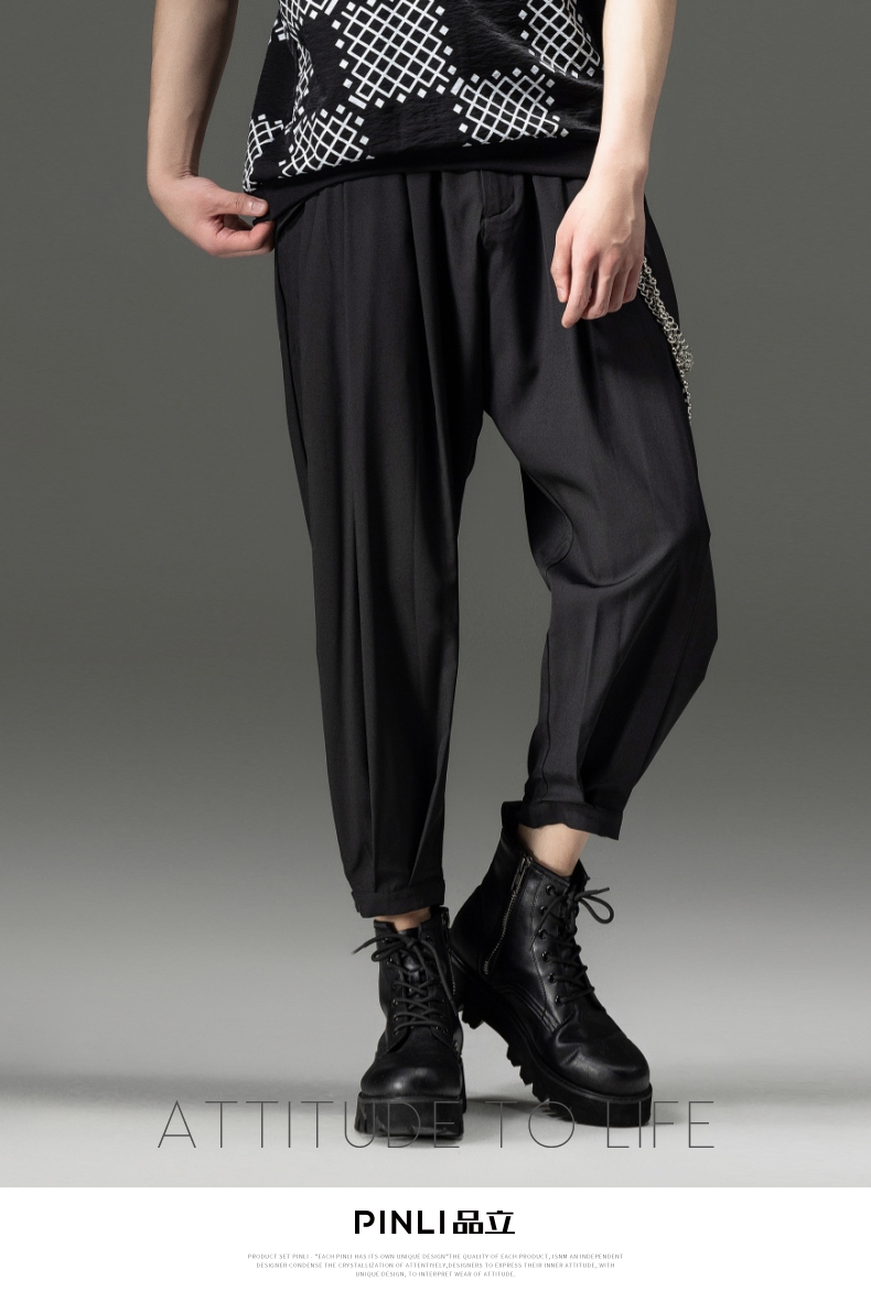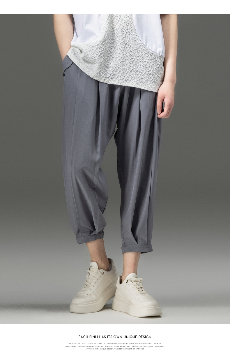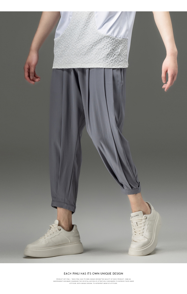 PINLI品立裁魂夏季新款束脚裤薄款百搭休闲九分裤潮牌纯色男裤子BC221117018