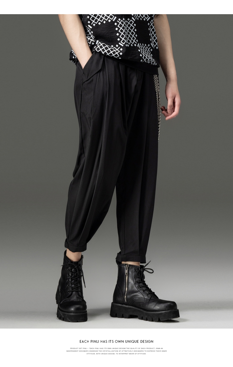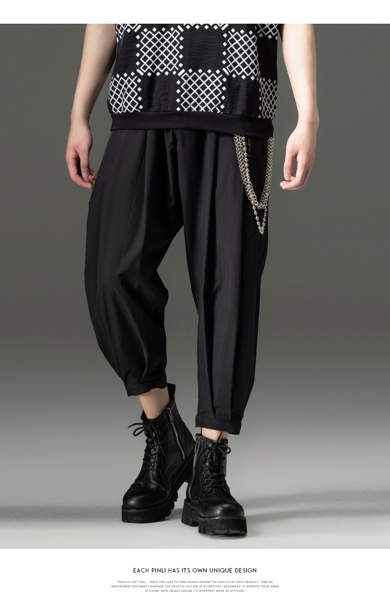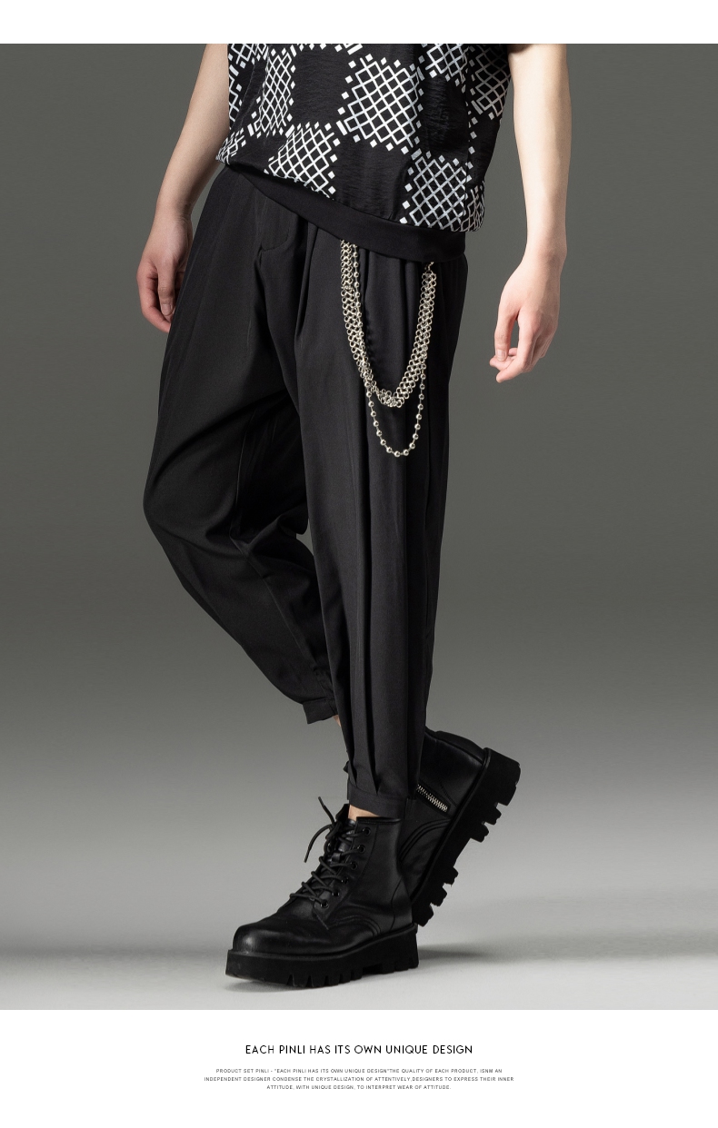 PINLI品立裁魂夏季新款束脚裤薄款百搭休闲九分裤潮牌纯色男裤子BC221117018
