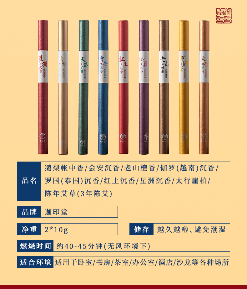 迦印堂丨单管香系列 线香 香道 10g 9种香型任意组合