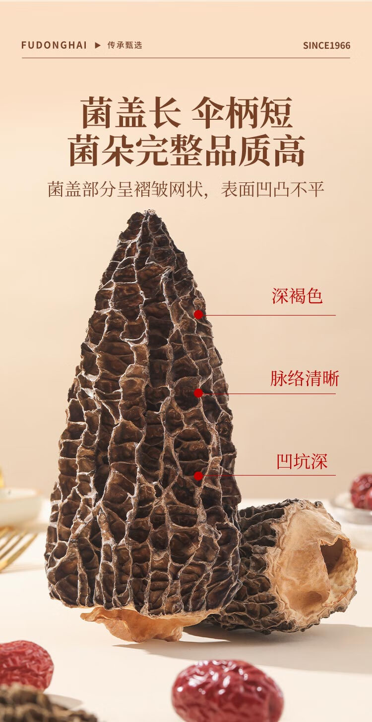 福东海羊肚菌礼盒200g【特大颗约9-12cm】菌菇干货煲汤食材 送长辈礼品