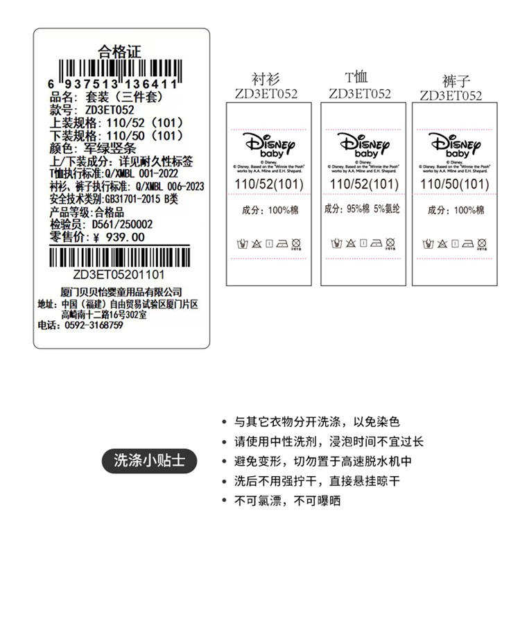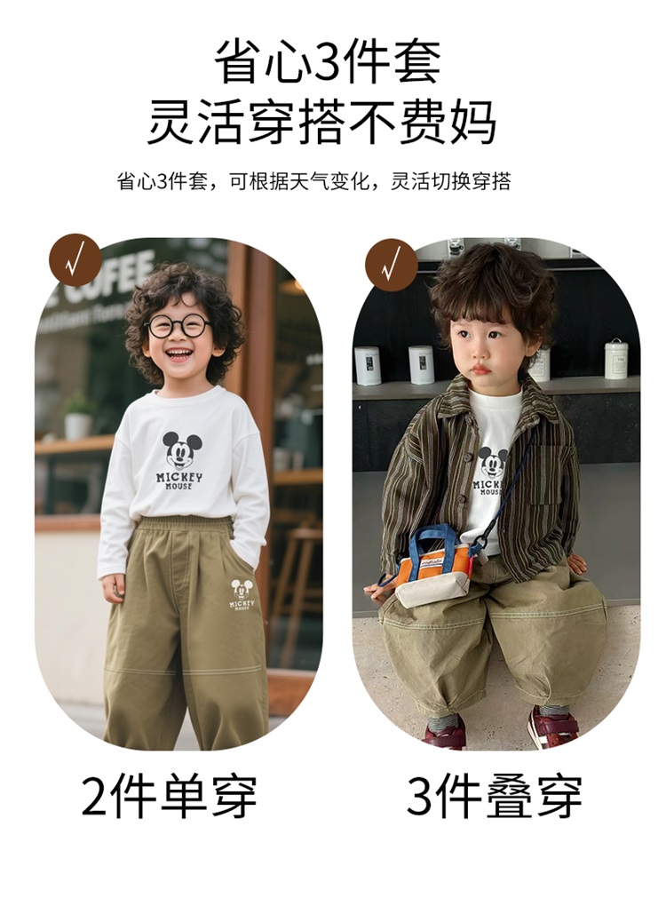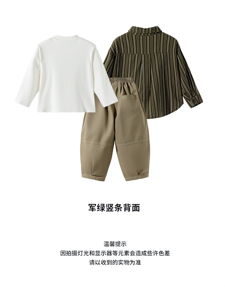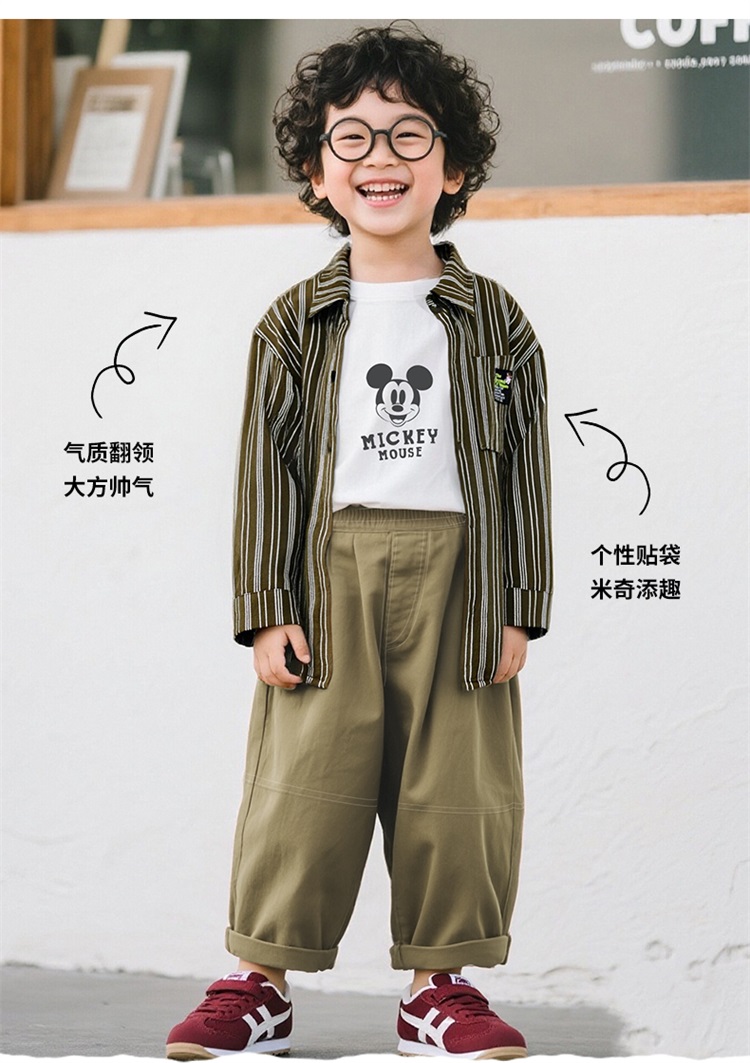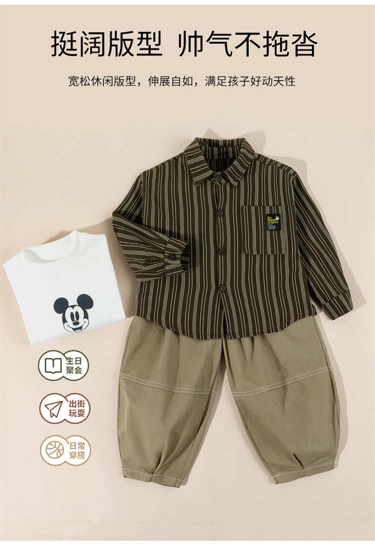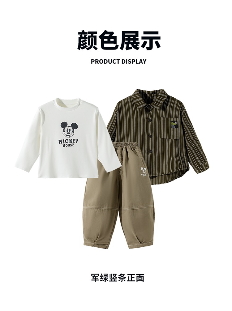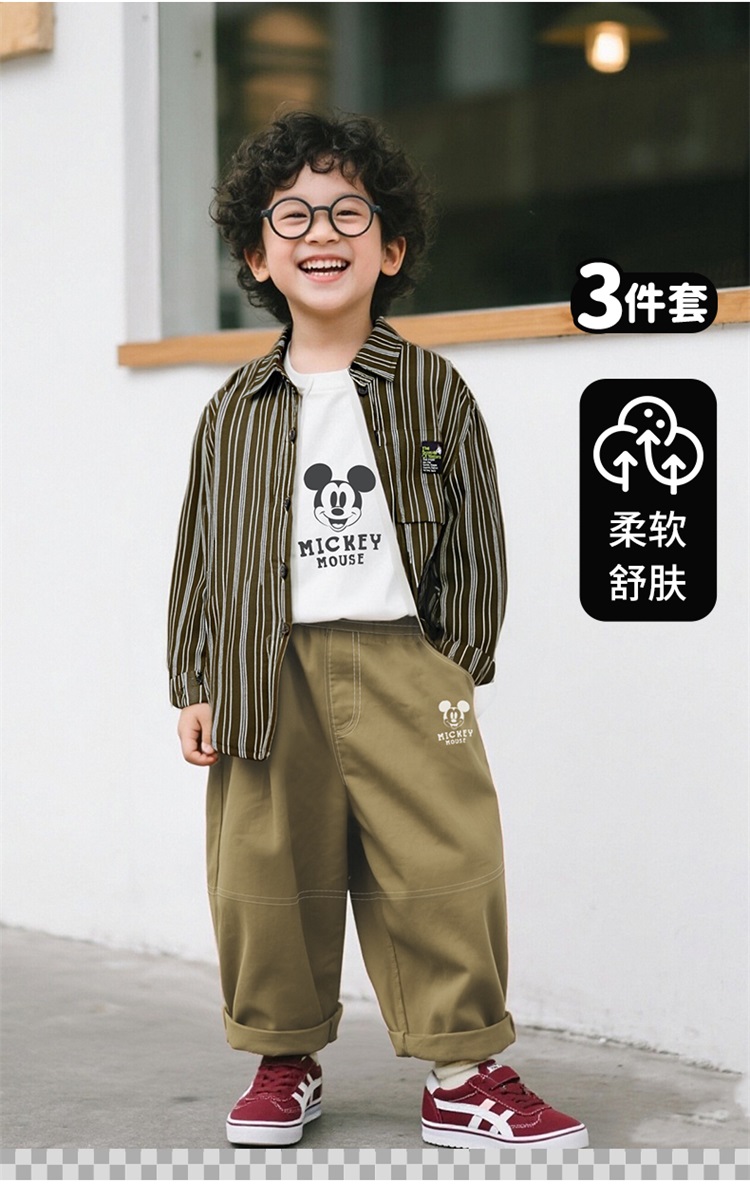 迪士尼秋季新款男童纯棉条纹衬衫休闲裤+T恤三件套ZD3ET052
