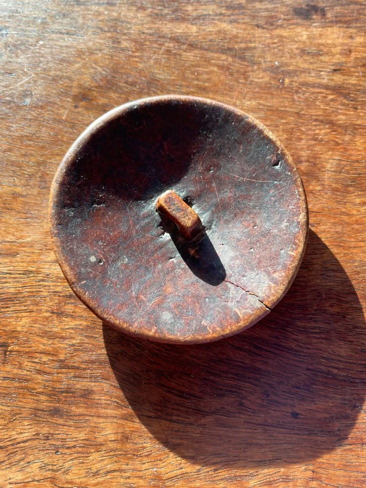 此只瘿木雕琢圆扣年代久,尺寸大造型简约典雅,质地坚硬,木色褐黄油润,千丝万缕的天然木纤维纹理,是一只年代久的老西式大衣的精緻钮扣。入手可以融入时尚服饰设计,风格典雅贵气。