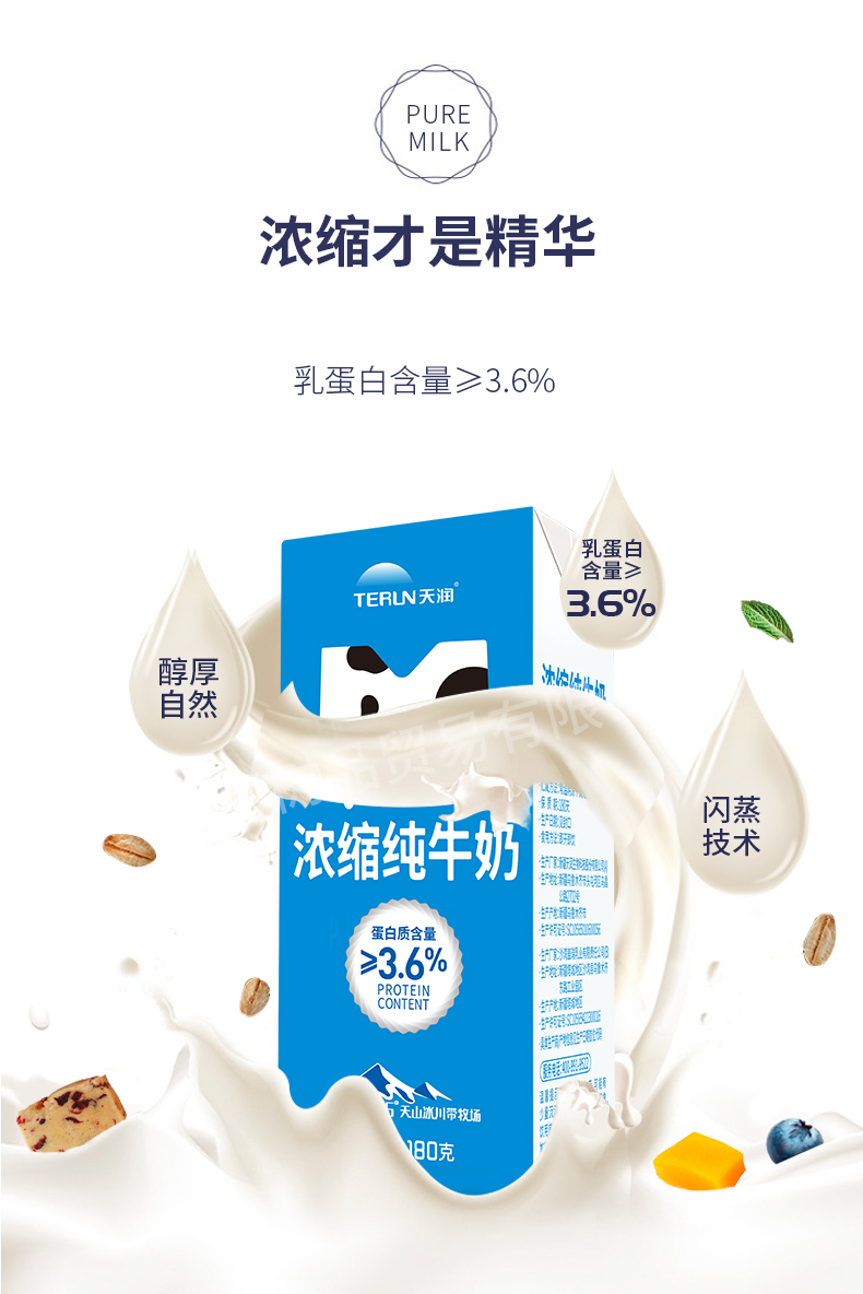 天润新疆浓缩纯牛奶康美砖M版180g*12