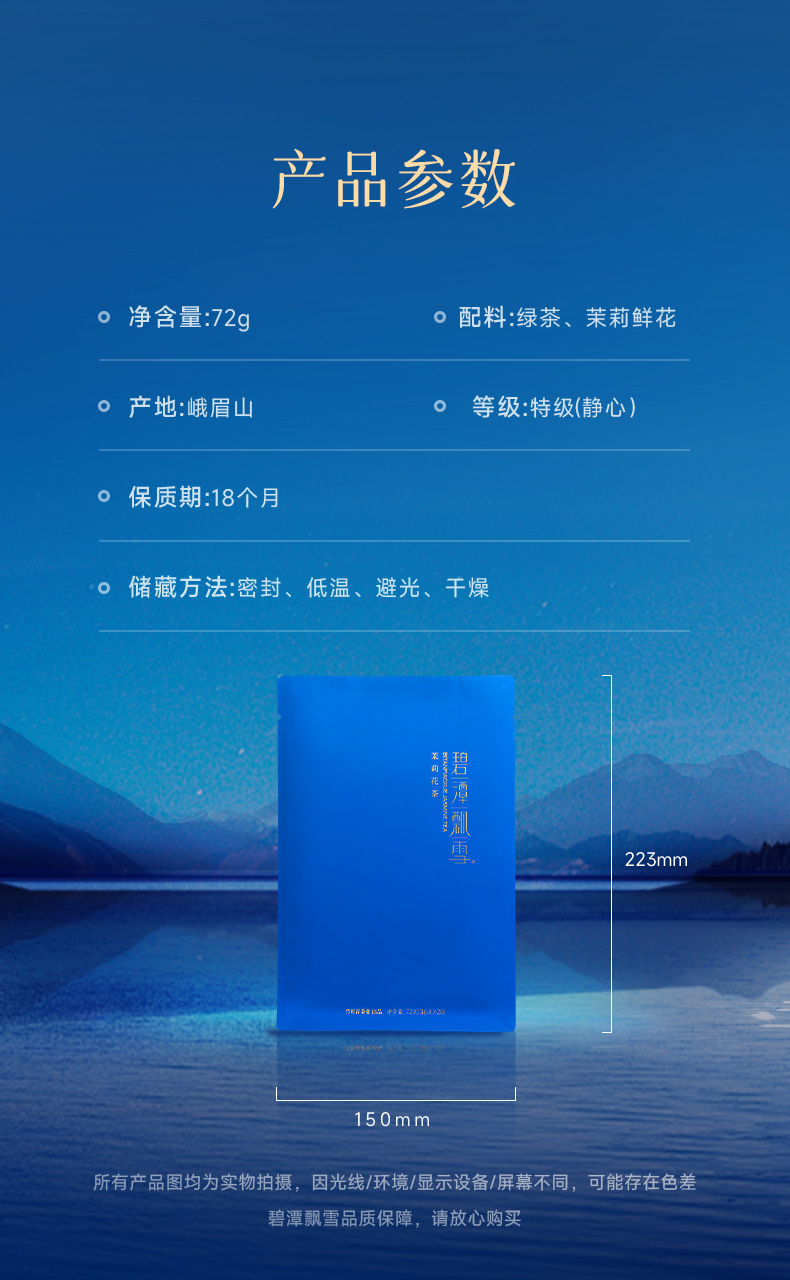 碧潭飘雪茉莉花茶特级静心茶叶四川飘雪茉莉绿茶