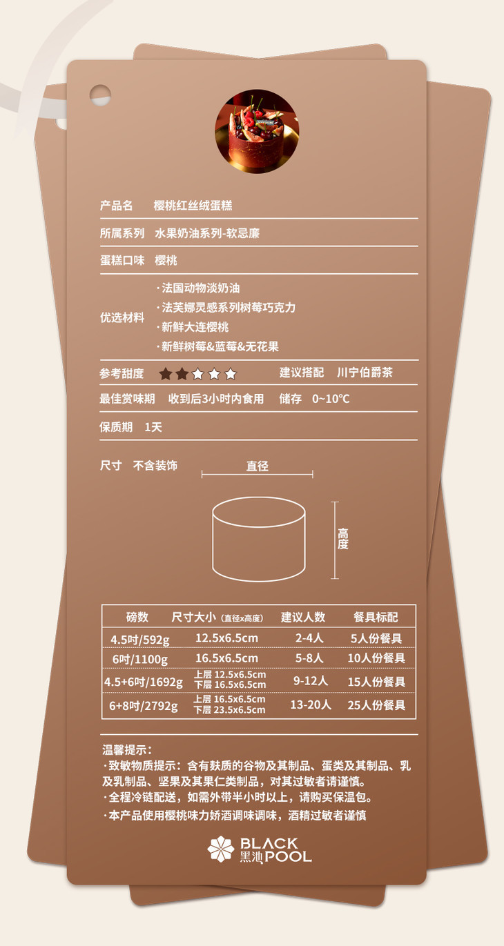 (直播特惠)4.5吋樱桃红丝绒蛋糕 - 黑池蛋糕