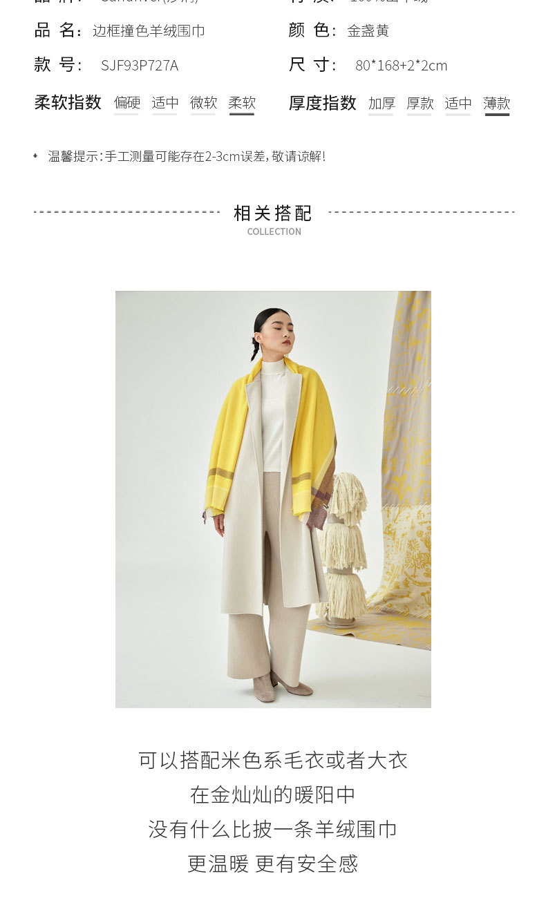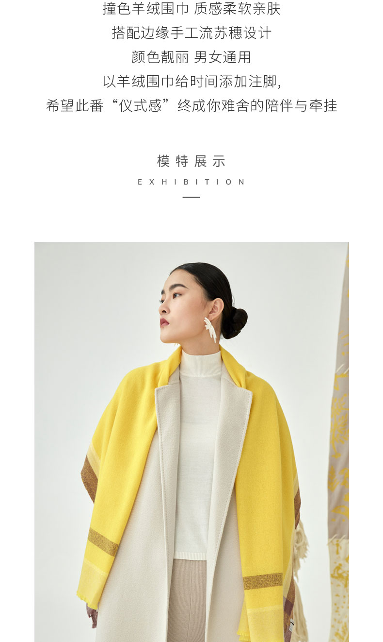 边框撞色羊绒围巾 SJF93P727A
