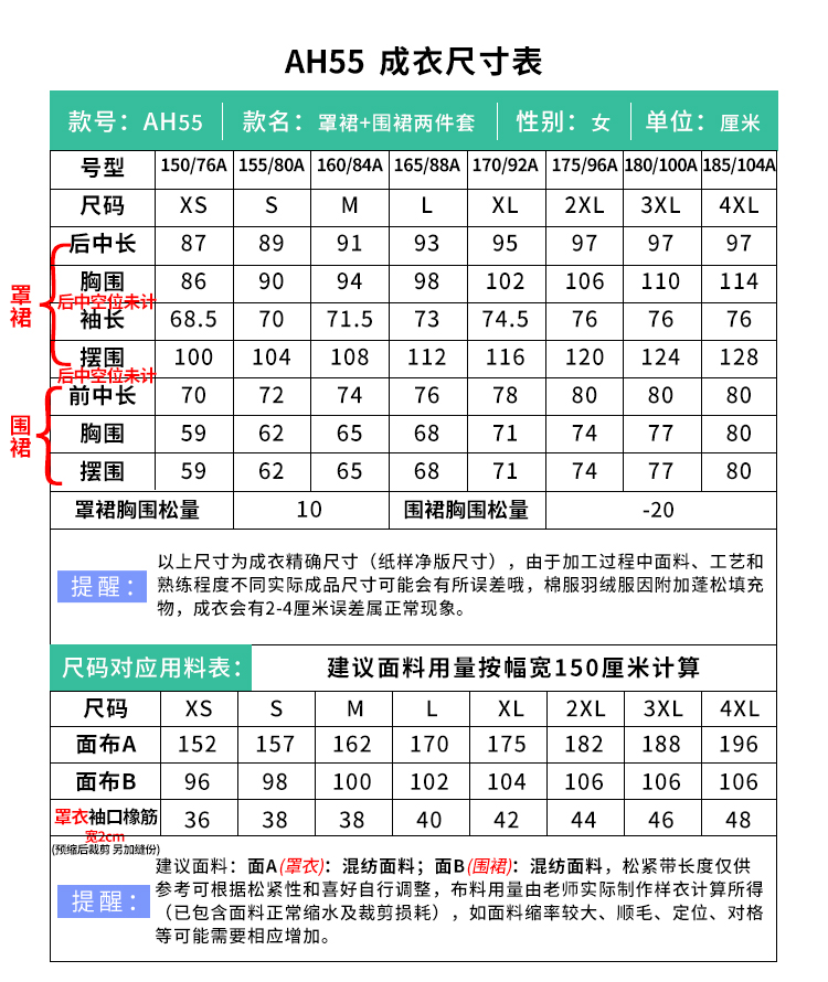 裁缝学苑AH55家用厨房做饭长袖围裙纸样女装韩版罩衣工作服样板