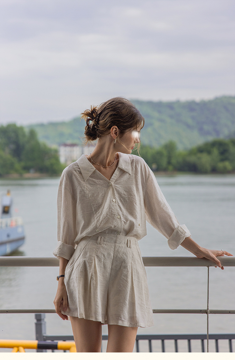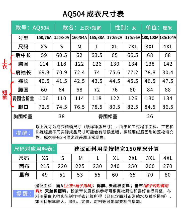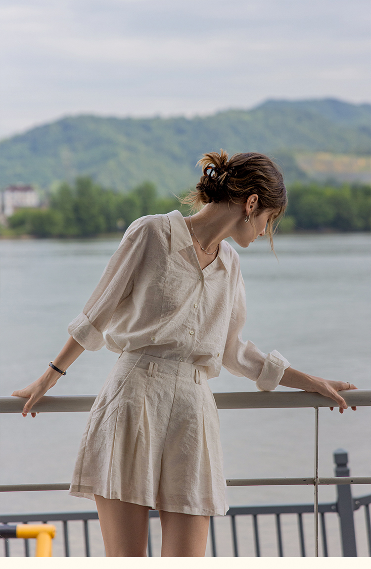 裁缝学苑AQ504翻领亚麻长袖衬衫纸样裙裤套装短裤女装样板图纸