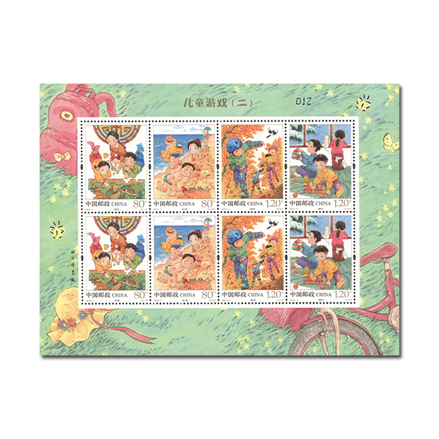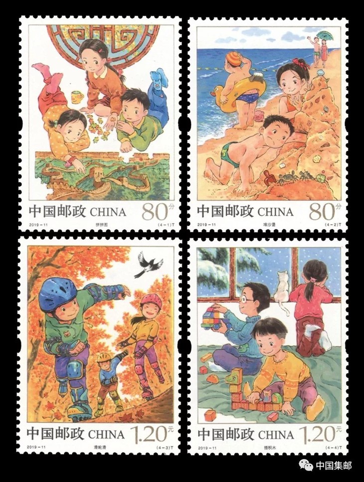 中国邮政定于2019年6月1日发行《儿童游戏(二)》特种邮票1套4枚,主要表现现代儿童的游戏方式,体现儿童健康、阳光、活泼的特点。