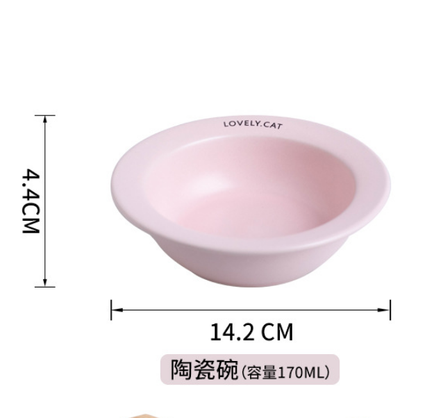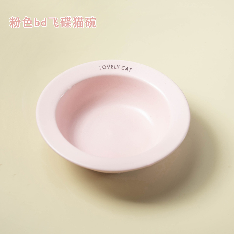 严选【粉色bd飞碟陶瓷猫碗】餐食碗宠物猫碗保护颈椎斜口猫饭碗宠物水碗狗狗碗1个