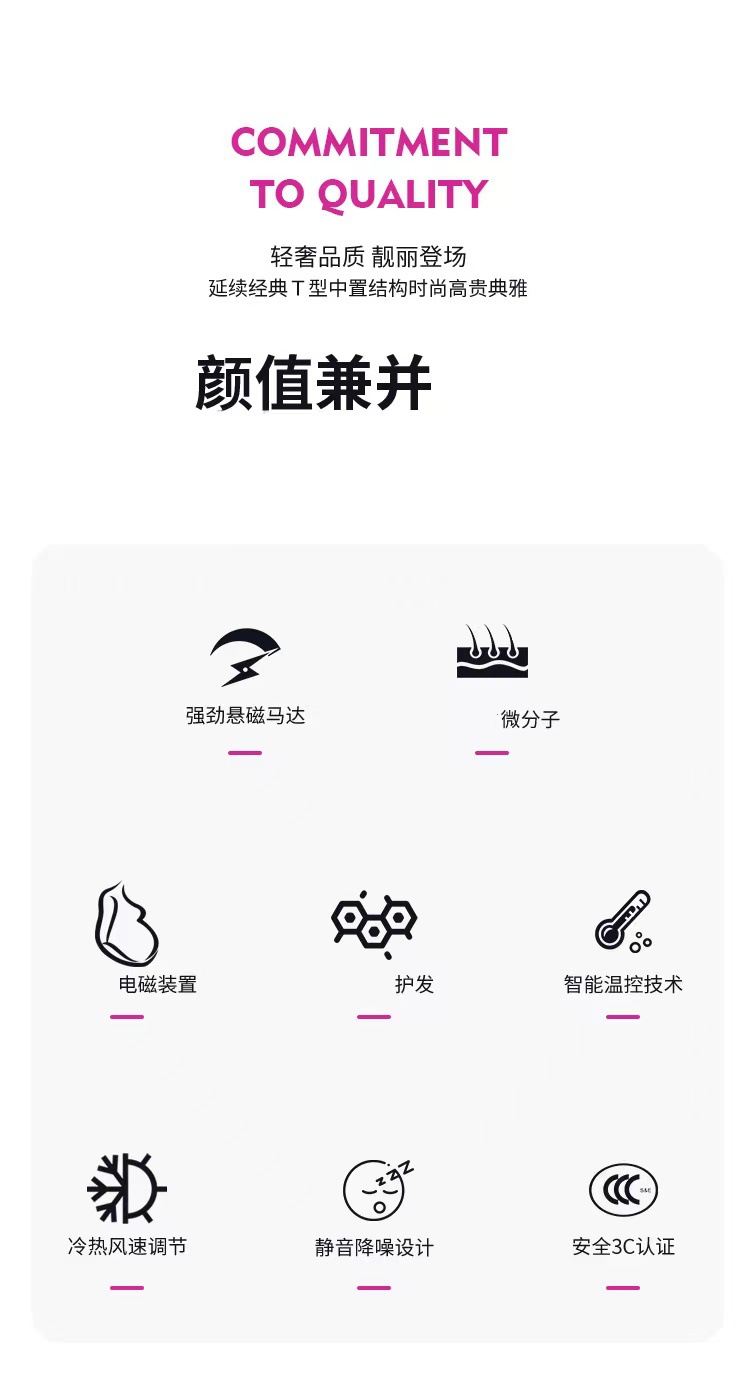 吹风机家用学生宿舍电吹风便携网红时尚吹风筒蓝光大功率