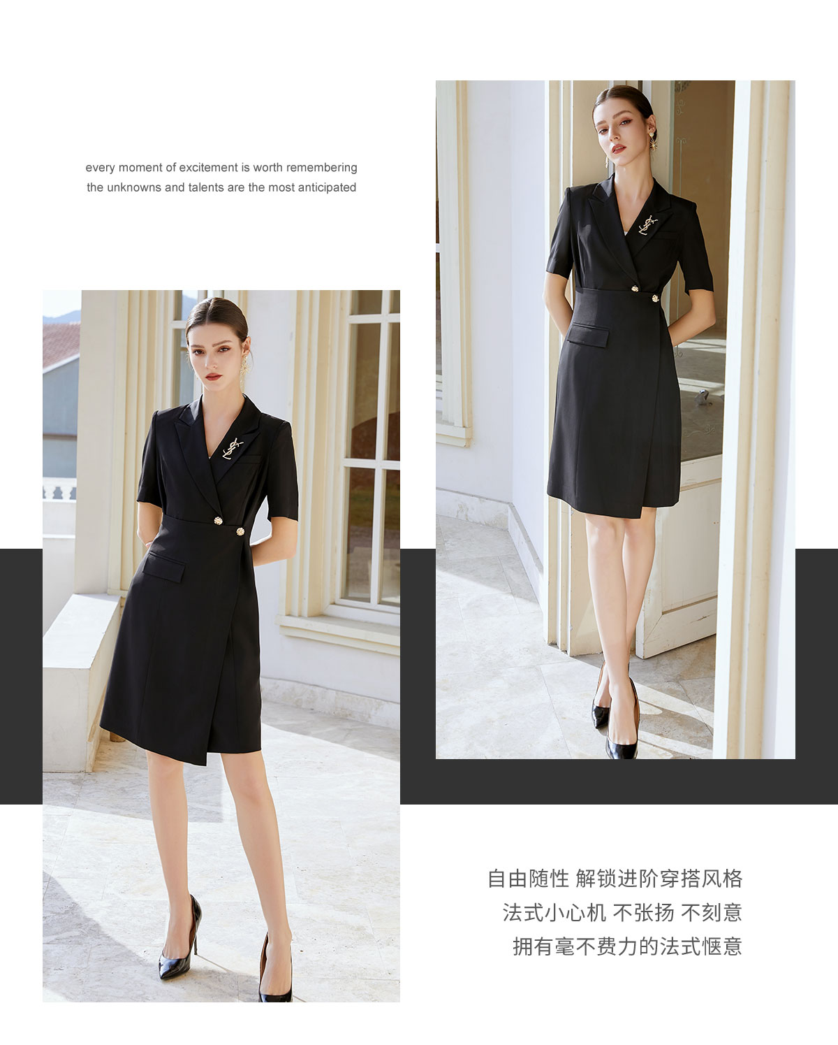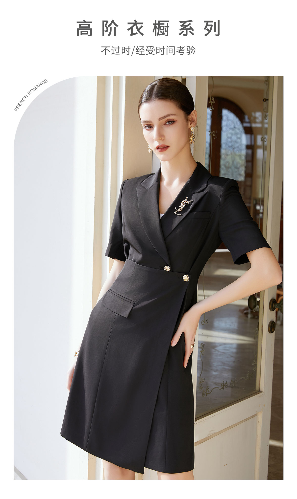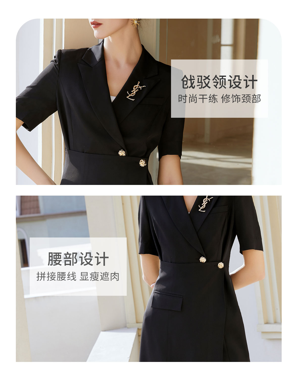 AD法式赫本风黑色连衣裙女气质高级感围裹式a字裙夏季短袖西装裙