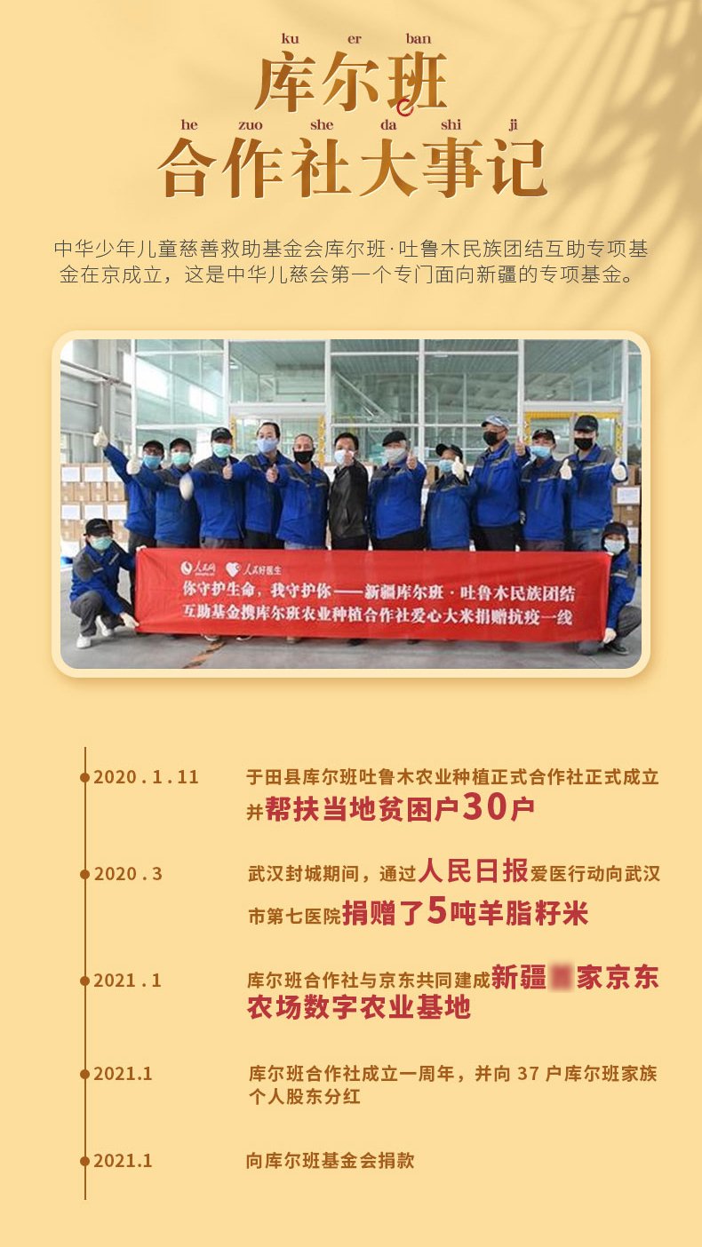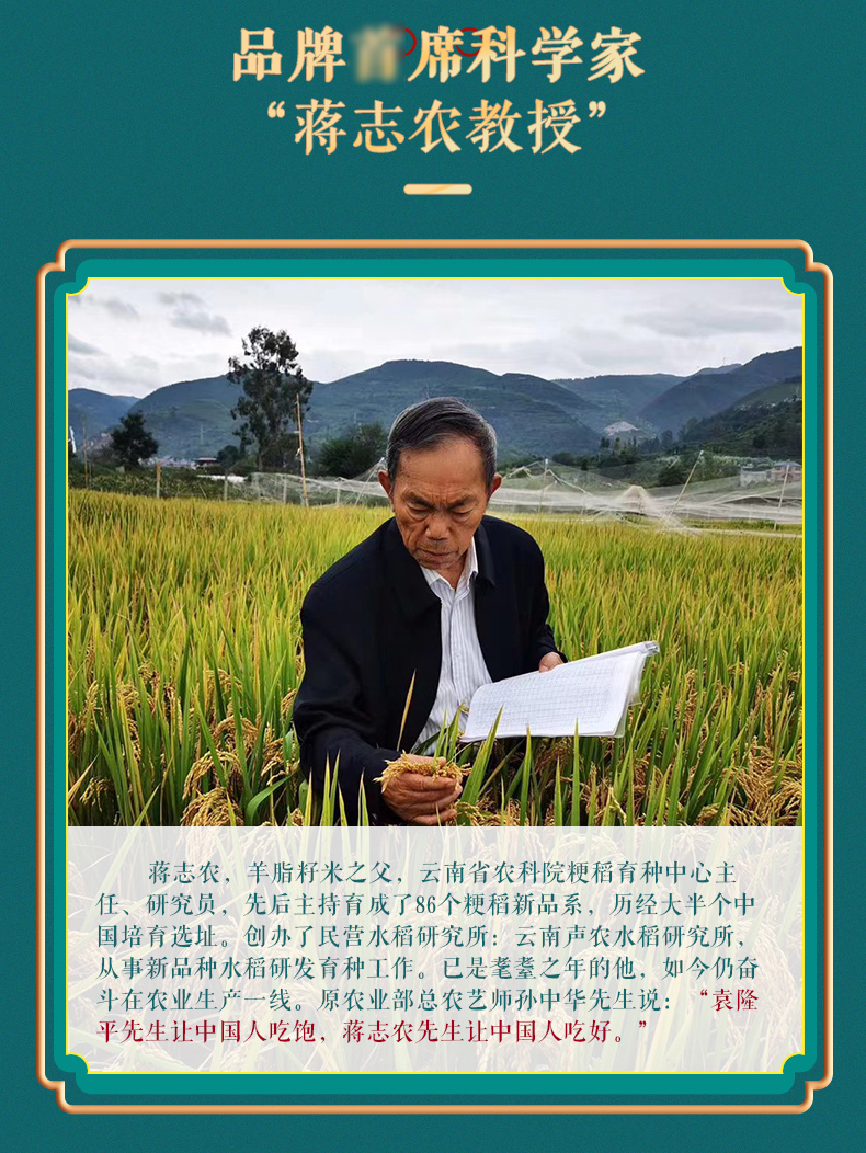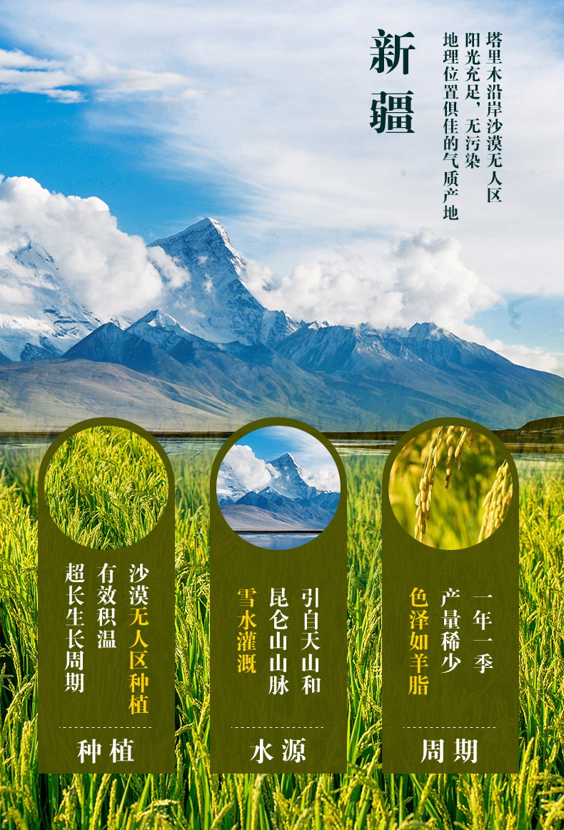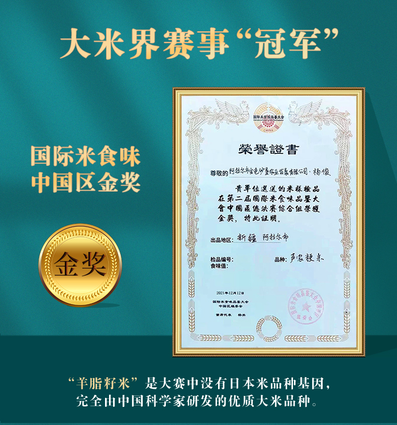 跟我们常见的黑龙江大米和江南稻米不同,这是被誉为“羊脂玉珠米之父”的蒋志农教授研究了30多年、凝聚他毕生心血的优质粳米稻。为了种植出真正健康又好吃的米,教授在黑龙江、云南等多处实验未果,直到来到了日照长达12小时的新疆塔克拉玛干沙漠边缘、海拔1100米的塔里木河畔,才培育出羊脂玉珠米。在新疆阳光充裕且昼夜温差大的气候条件下,羊脂玉珠喝着天山雪水自然成熟,种植全程包含苗期都不使用农药。收割后,还需露天自然晾晒10天,水分降至13%再入库,这个过程在新疆以外几乎无法实现,这才造就了羊脂玉珠的糯性和嚼劲!而这款羊脂籽米更是保留了85%以上的胚芽,营养更丰富!