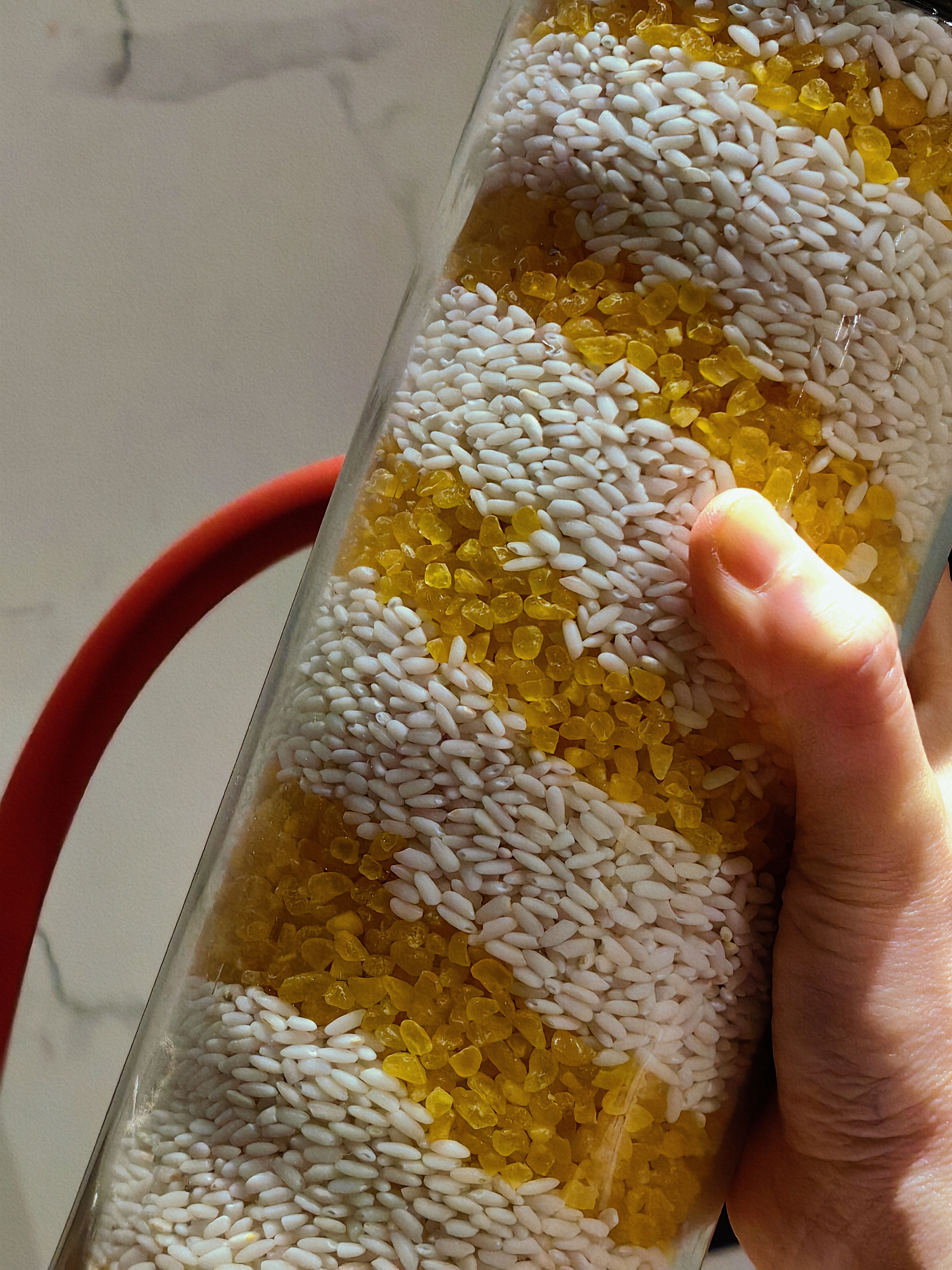 普通大米质地单薄透光,色泽暗沉,羊脂玉珠米,米粒细长完整,通体白而不透,形似糯米,却比糯米更加玉润更饱满。要提醒的是,蒸煮羊脂玉珠米用的水一定要少,好米不吃水哦!一般蒸米饭的水米比例为1.2:1,水面要高于米面1-1.5cm,用羊脂玉珠米,水米比例只有1:1,水面高于米面0.5cm即可。我煮下来的经验是,如果不淘米,就一碗米搭一碗水,如果淘米,就一碗米搭0.9碗水,煮好后再保温10分钟更赞!