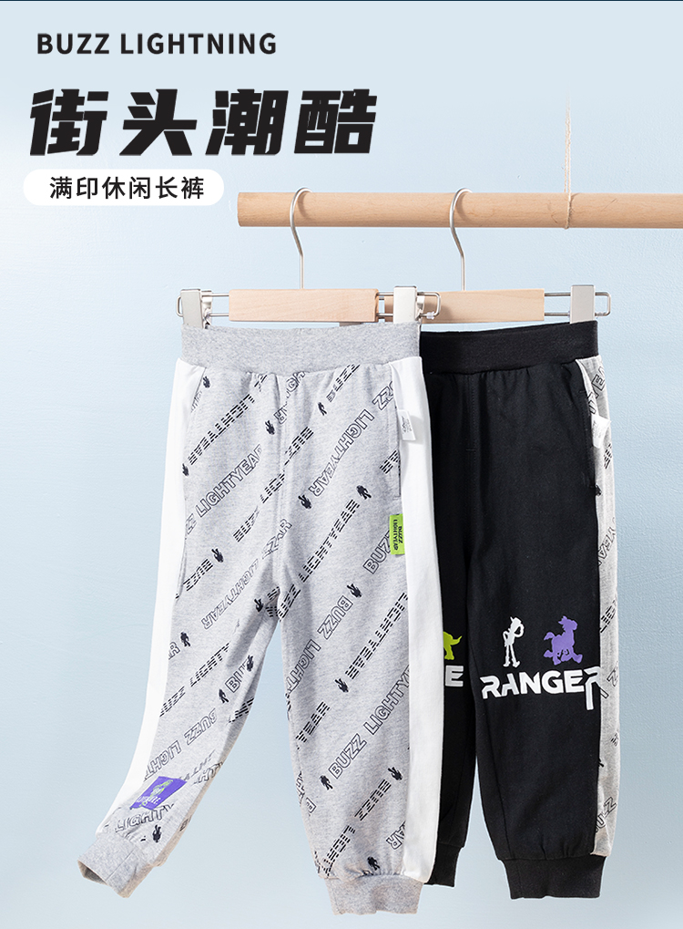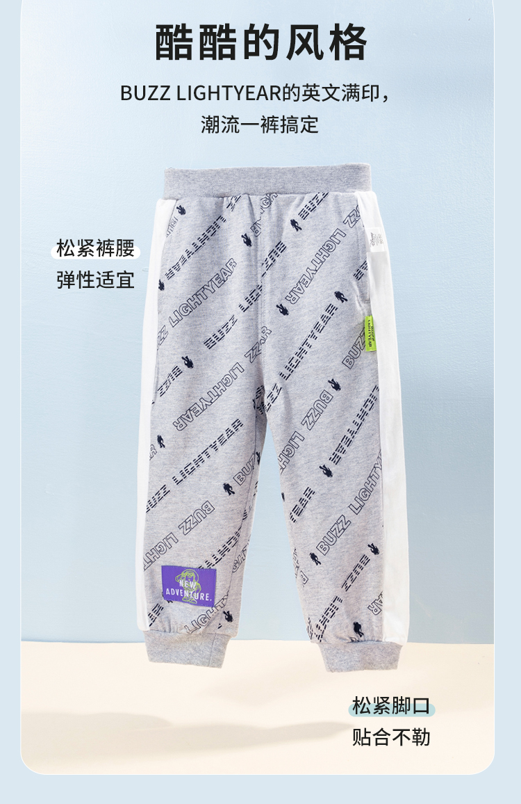 【商场同款】 迪士尼童装男童春秋运动休闲裤字母时尚印花巴斯光年卡通束脚裤