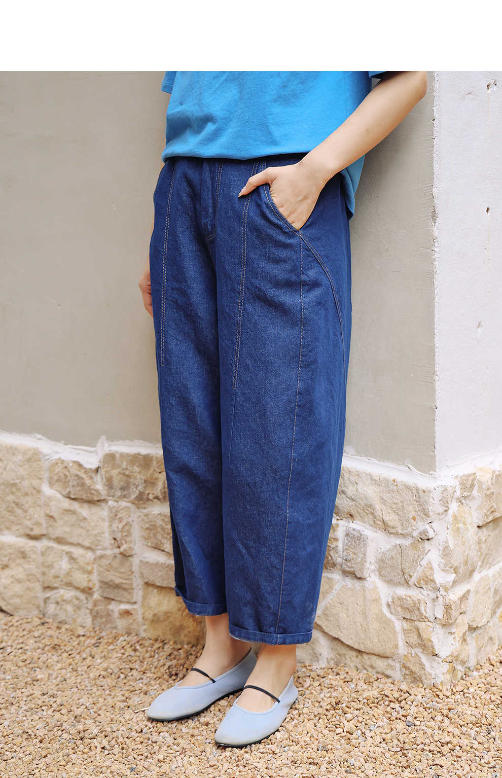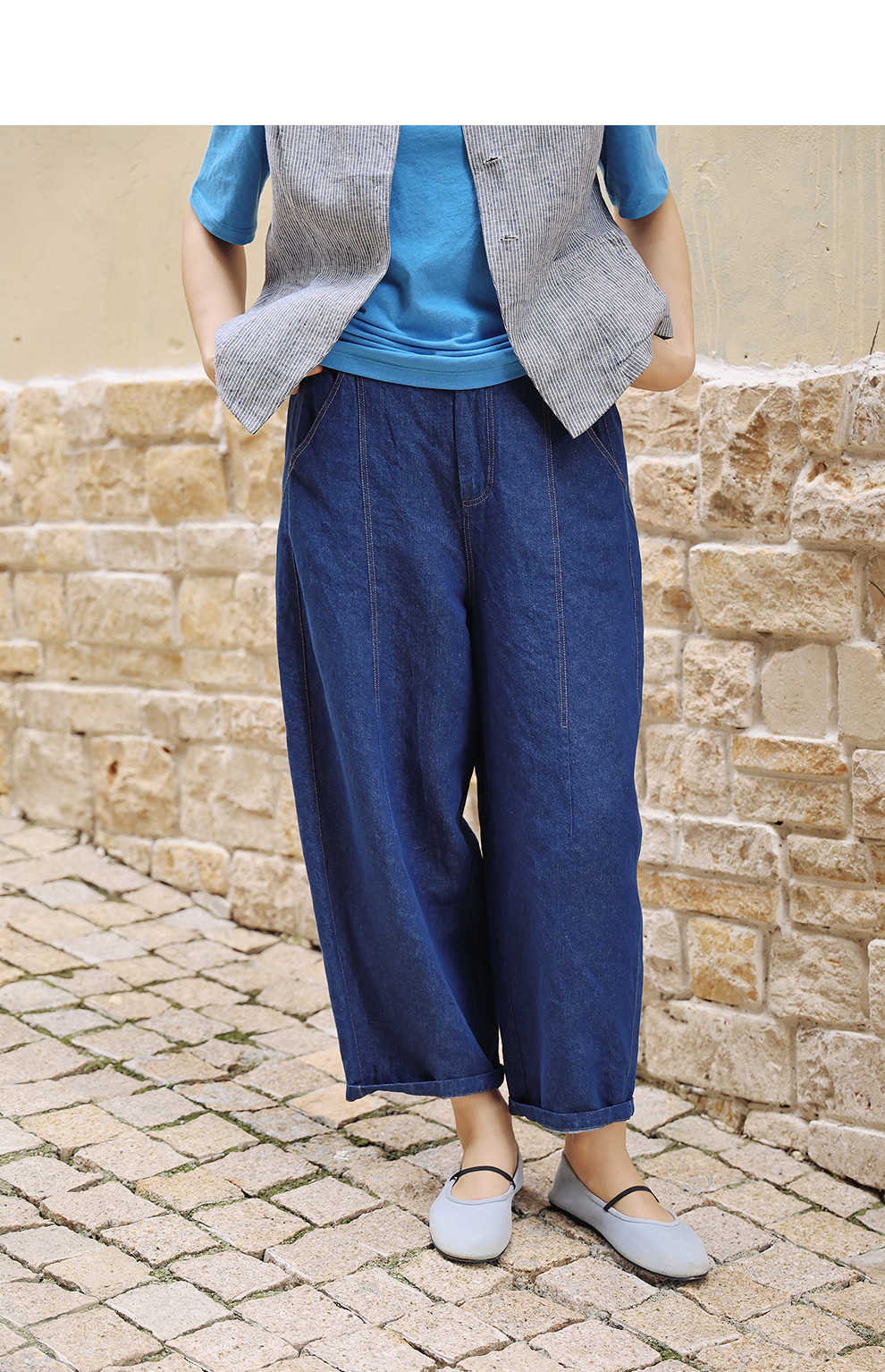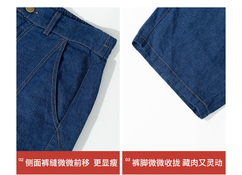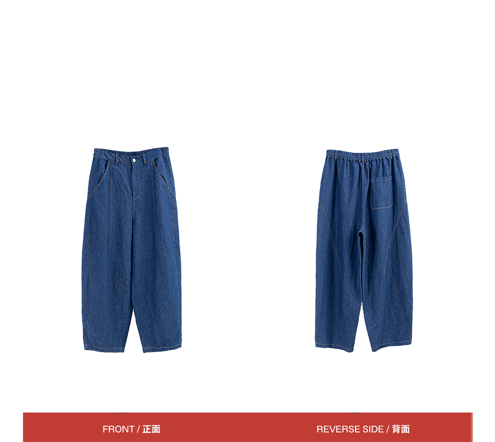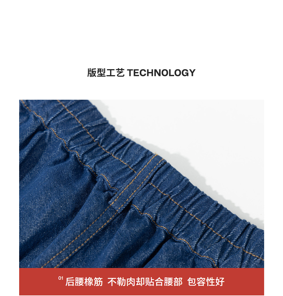 绽放397朵/多巴胺系列汉麻棉半腰松紧分割线设计撞色绗线牛仔裤女