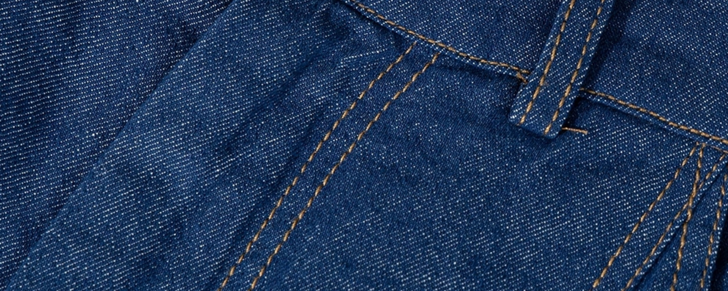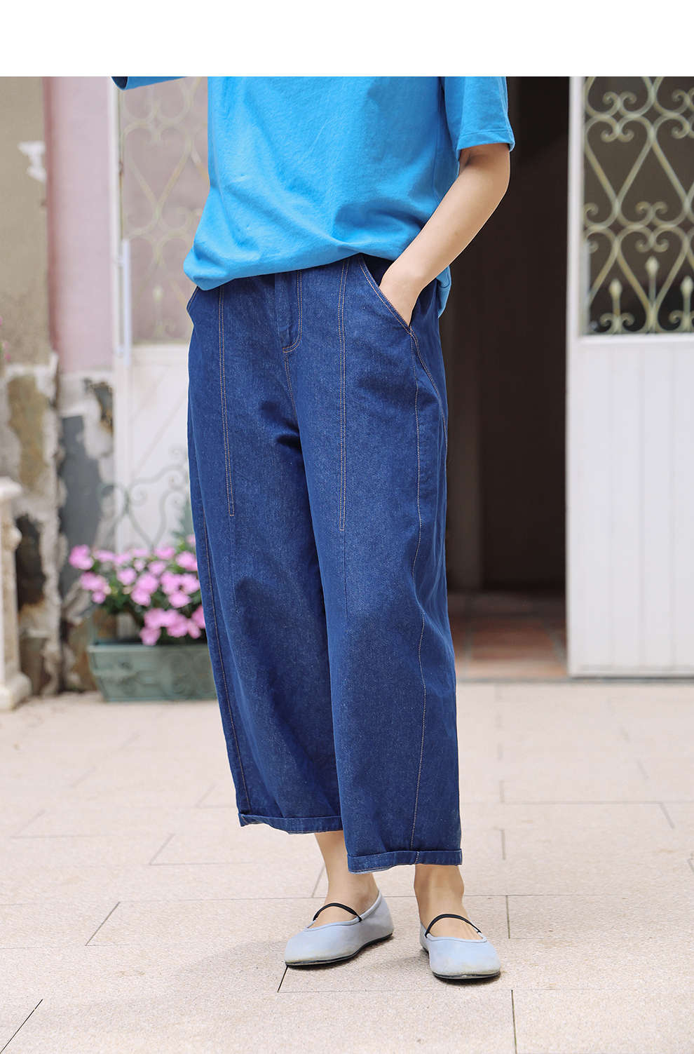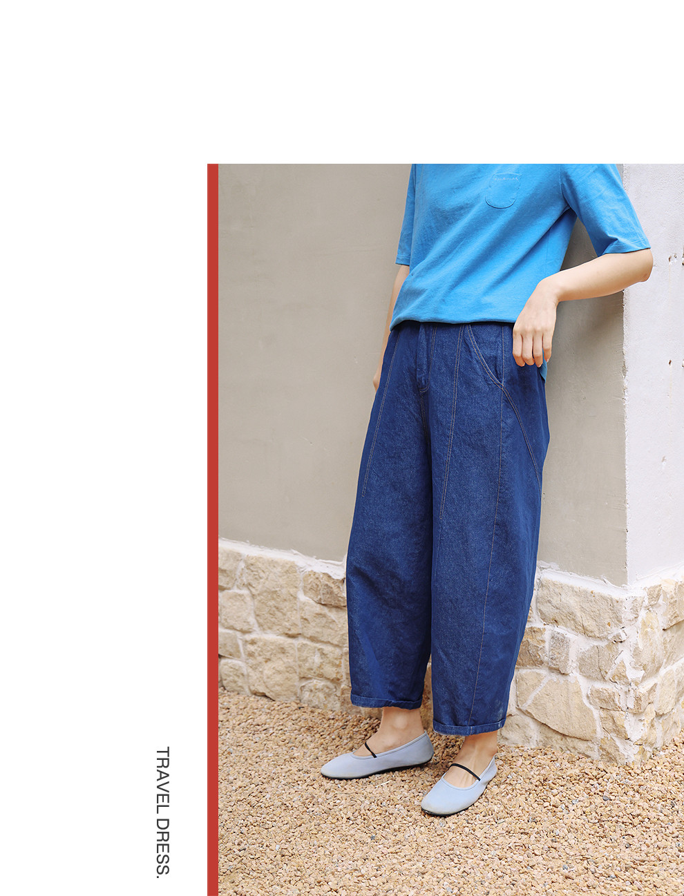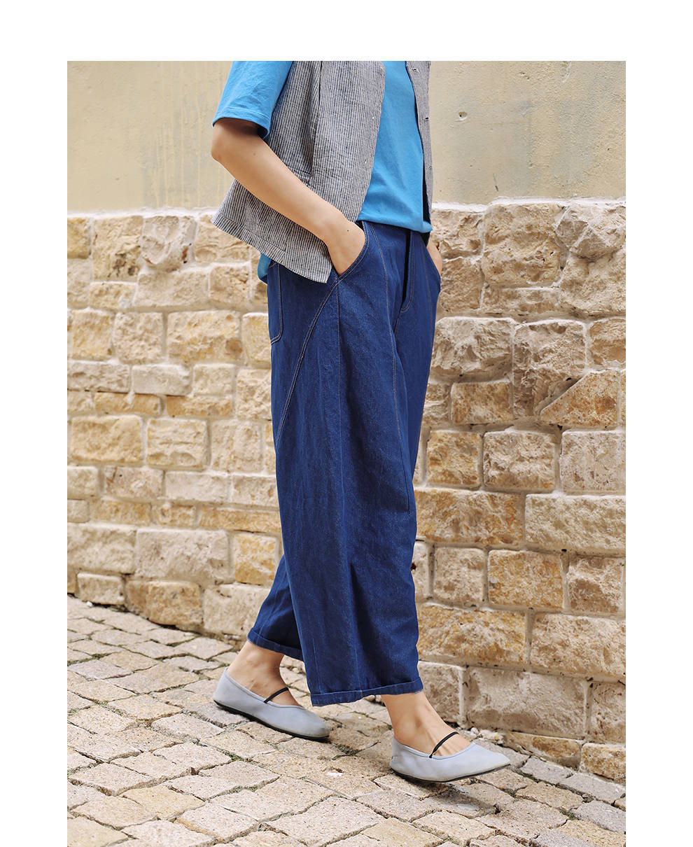 绽放397朵/多巴胺系列汉麻棉半腰松紧分割线设计撞色绗线牛仔裤女