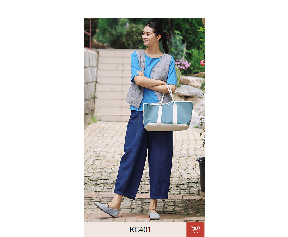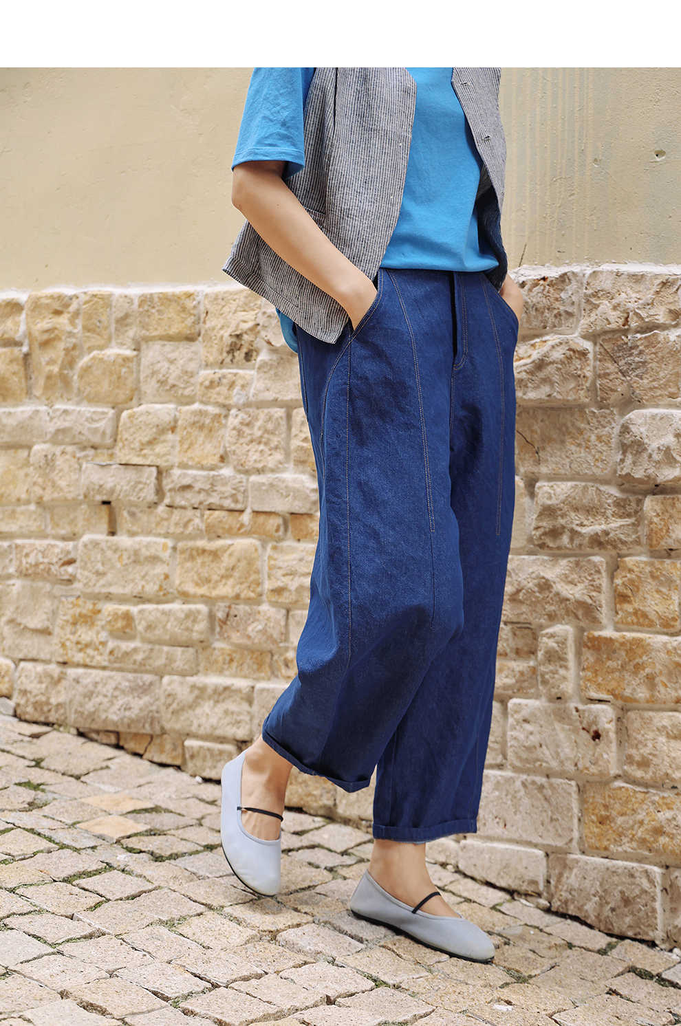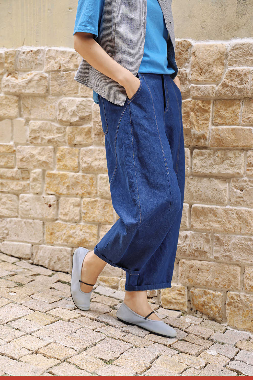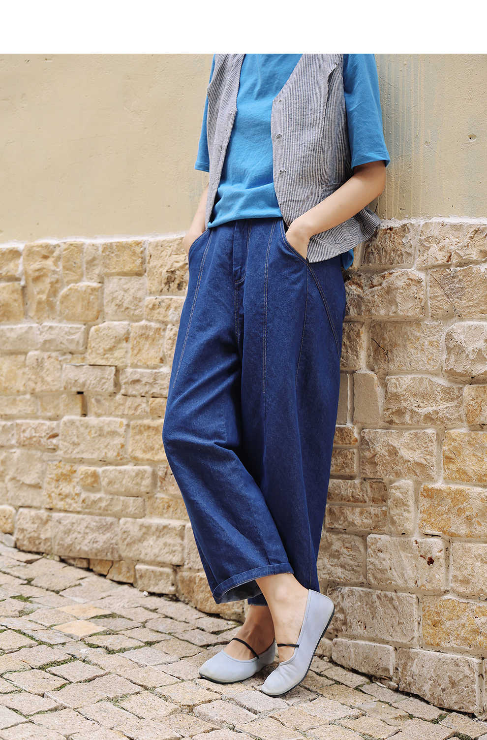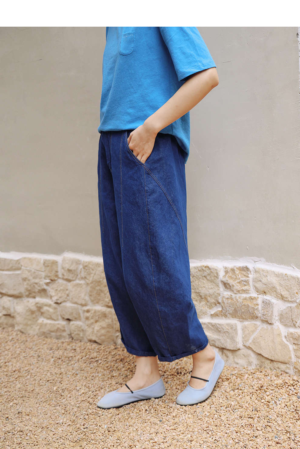 绽放397朵/多巴胺系列汉麻棉半腰松紧分割线设计撞色绗线牛仔裤女