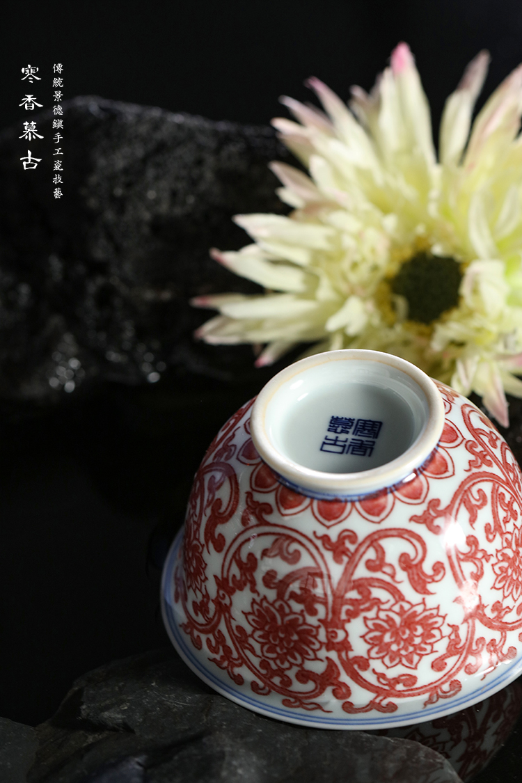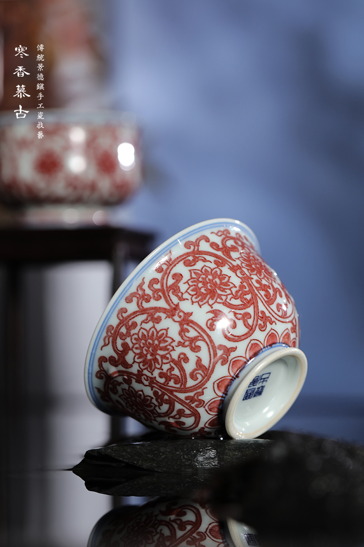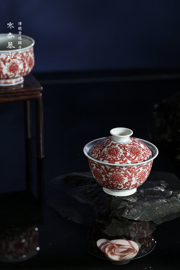 寒香慕古釉里红双勾莲二才盖碗