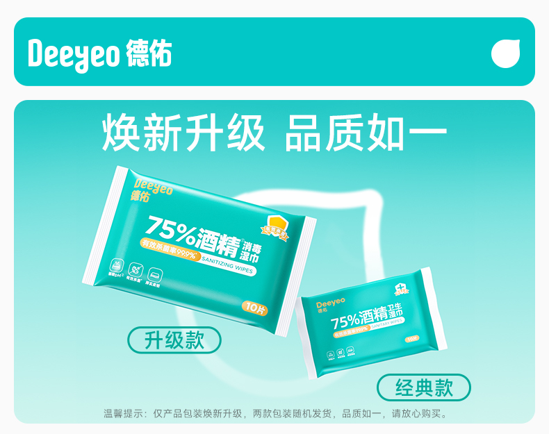 德佑75度酒精湿巾小包便携式随身装10片*10包/20包