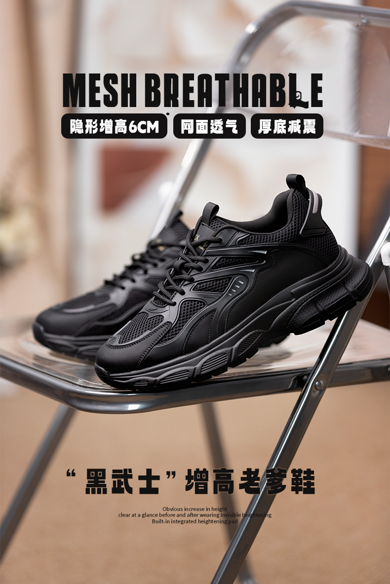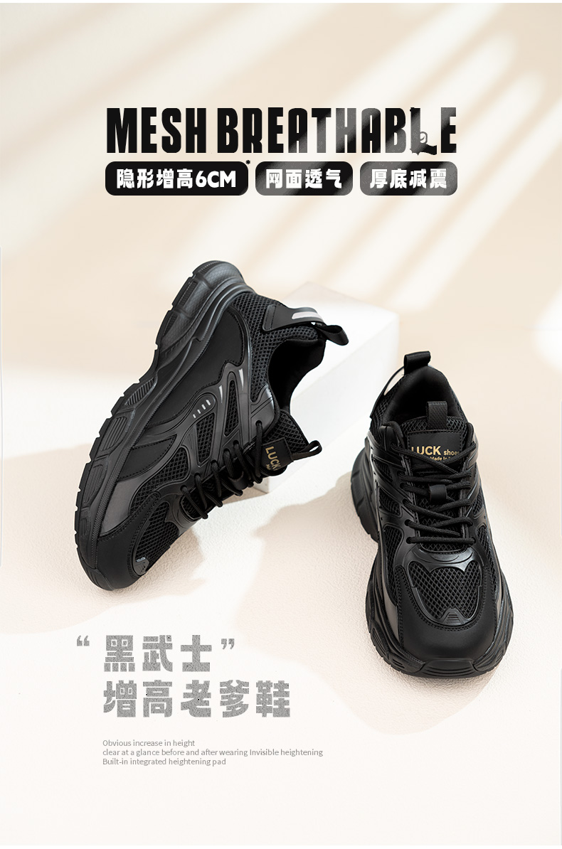 男士隐形增高6cm老爹鞋透气网面内增高男鞋增高鞋男运动鞋