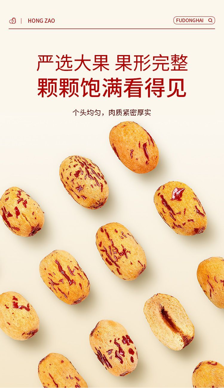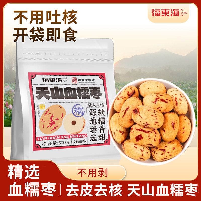 福东海天山血糯枣500g 去皮去核新疆无核红枣灰枣零食