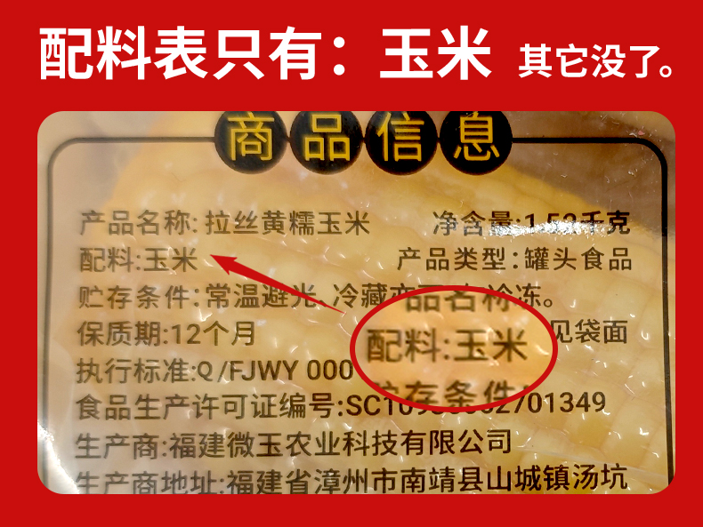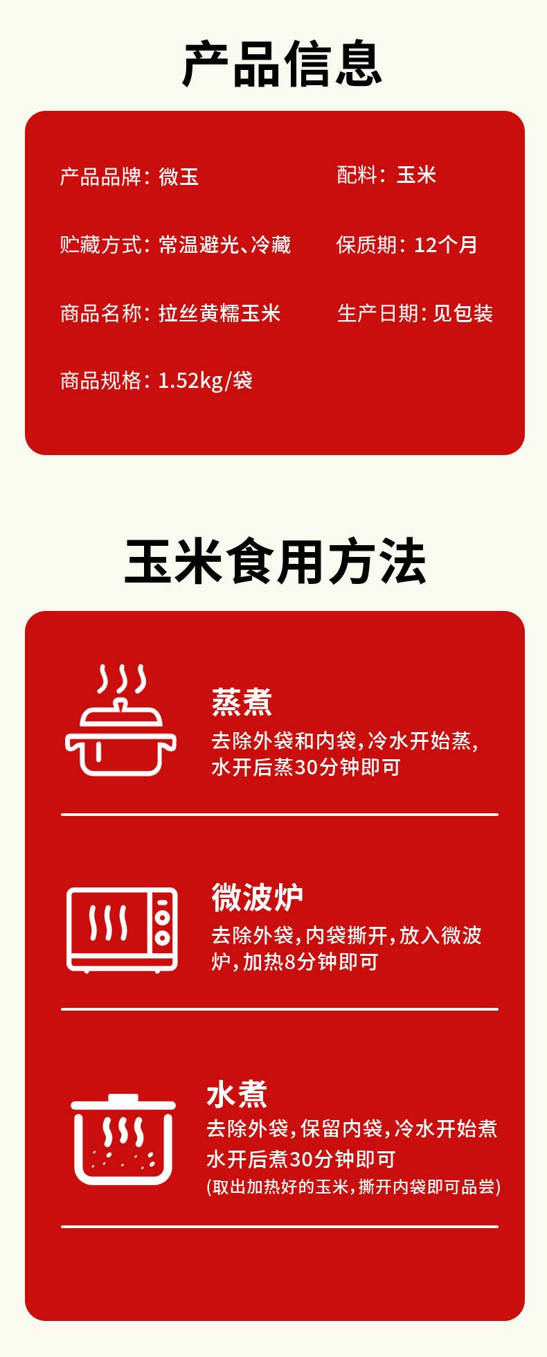 微玉 拉丝黄糯玉米 香甜糯 真空装 7A高标准 非转基因 1.52kg*2袋