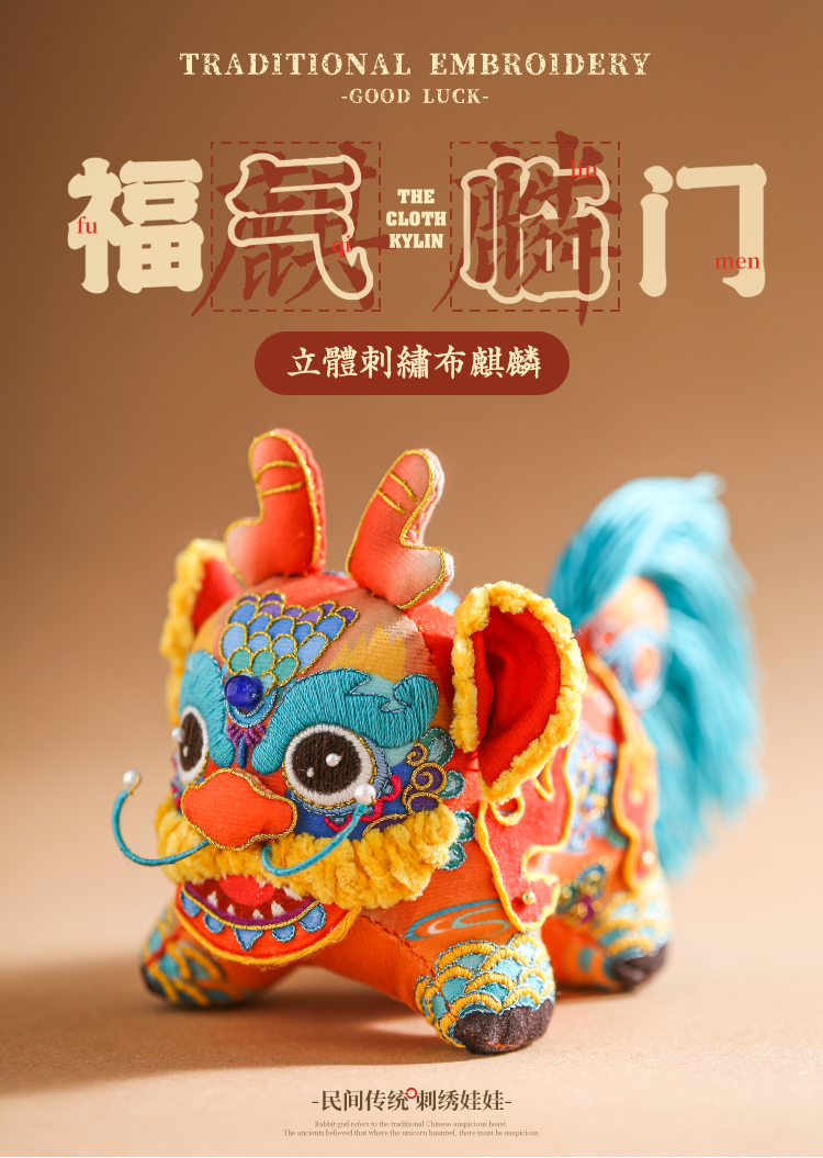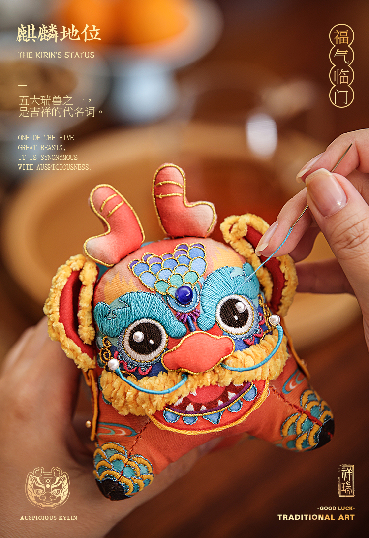 「麒麟一出,必有祥瑞」大麒麟摆件刺绣材料包
