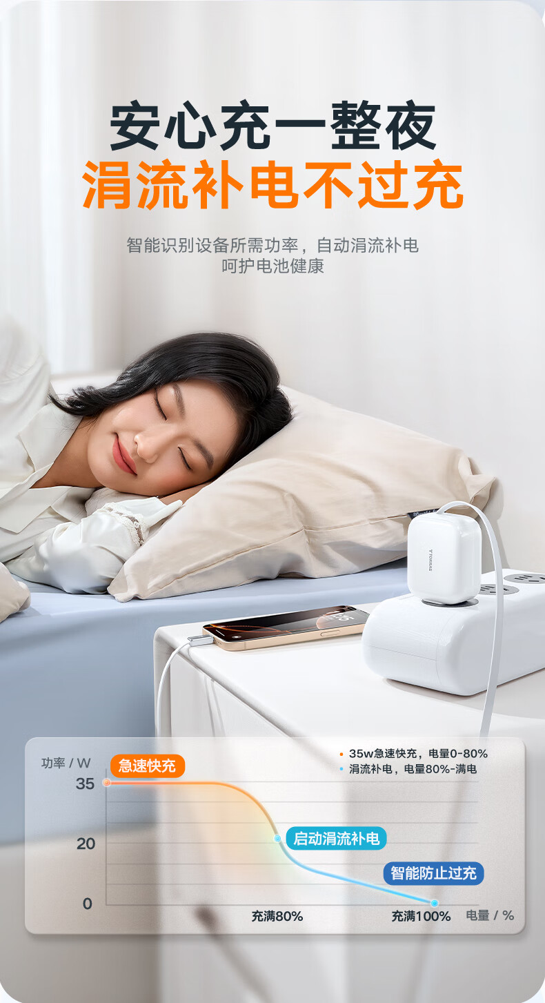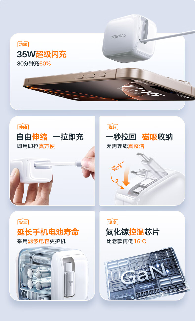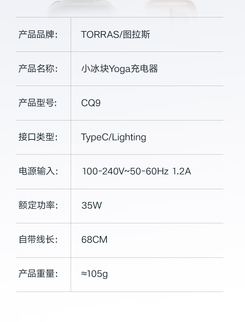 【积分兑换】图拉斯 小冰块Yoga【伸缩线充电器】 35W CQ9