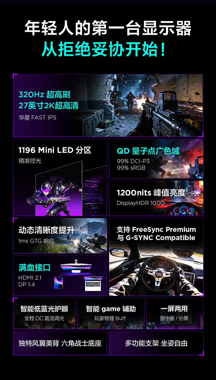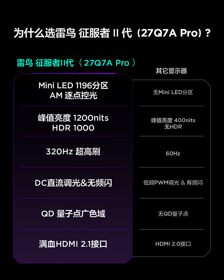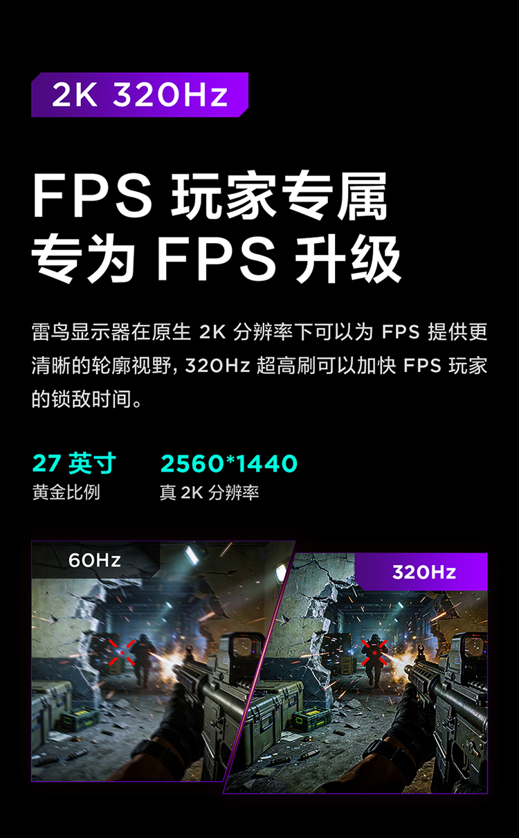 【FFALCON雷鸟】雷鸟27英寸4K160Hz双模320Hz电竞显示屏 DC调光护眼 1196分区 MiniLED电脑显示器U8A狩猎者二代 27Q7A Pro