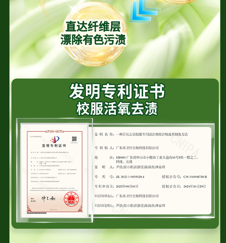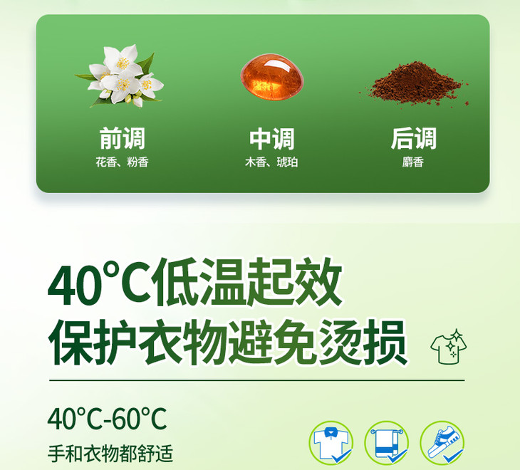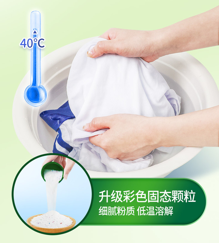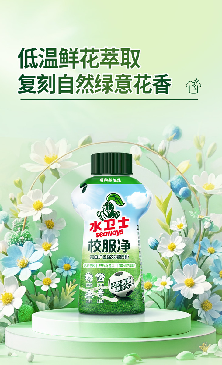 水卫仕校服净采用全新升级固态颗粒设计,即使在40℃的低温下也能迅速起效,安全高效且易漂洗无残留。其独特的洗护二合一功能,不仅能深层去渍,还能有效护衣护色,让衣物在清洁的同时保持原有色泽与质感。与传统洗衣液不同,校服净采用天然温和配方,无荧光剂、无增白剂,亲肤不刺激,即便是母婴也能安心使用。内含的活性氧与活氧因子协同作用,能够催化分解顽固污渍,使衣物焕然一新,同时保持衣物的柔软与舒适。除了强大的去渍能力外,水卫仕校服净还能让衣物亮白如新,护色持久。其独特的天然留香技术,采用鲜花低温萃取精华,为衣物带来清新自然的芬芳,仿佛置身于清晨的森林之中。而且在40-60℃水温下就能发挥出最佳的效果,不用高温泡洗,既保证了清洁效果,又避免了高温对衣物和双手的伤害,让清洁过程更加安全便捷!