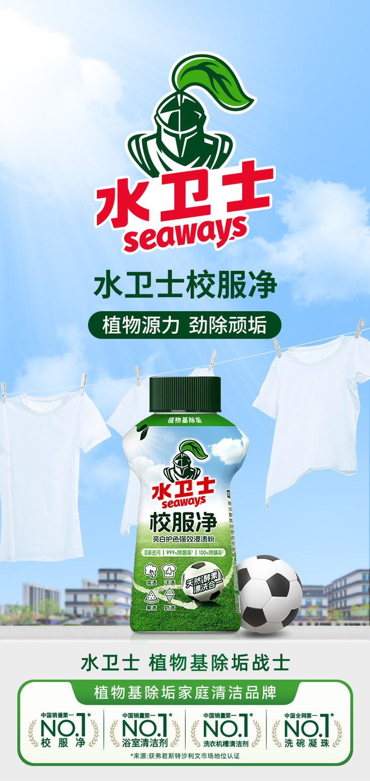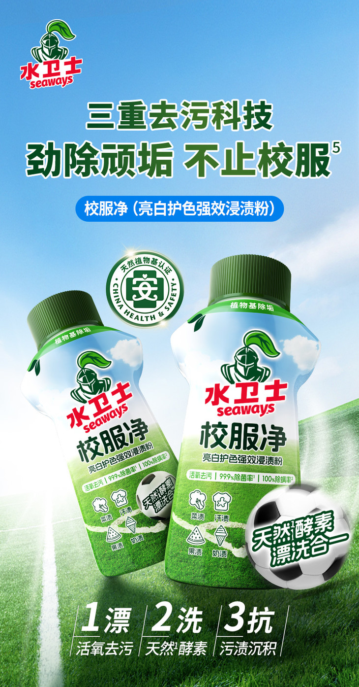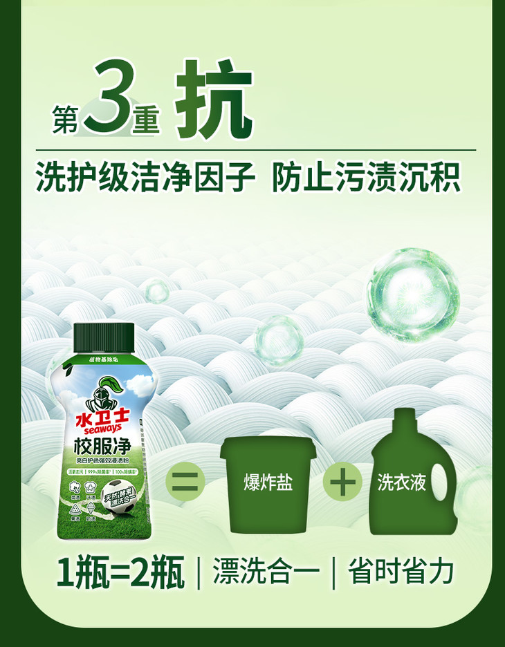 [屁侠推荐]水卫士校服净 洗护合一 活氧去污 亮白焕新 去汗渍菜渍果渍