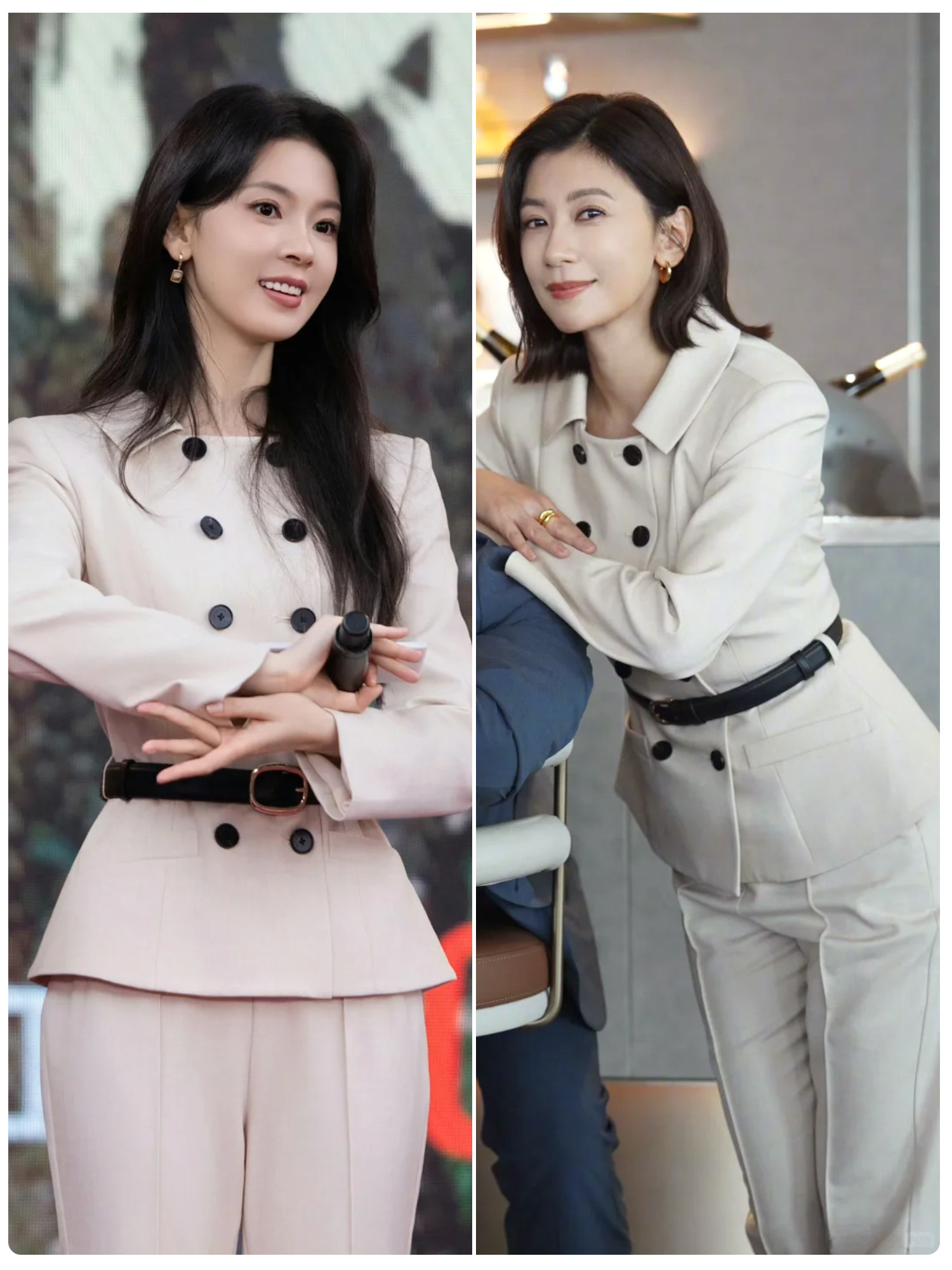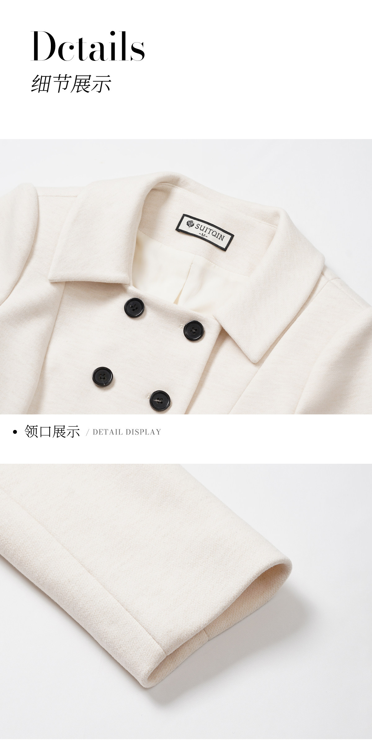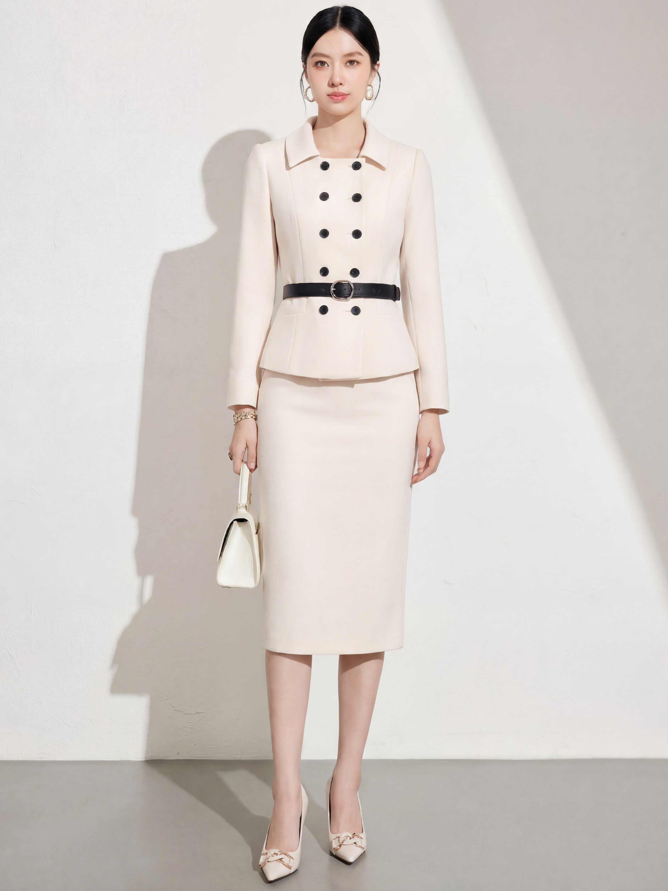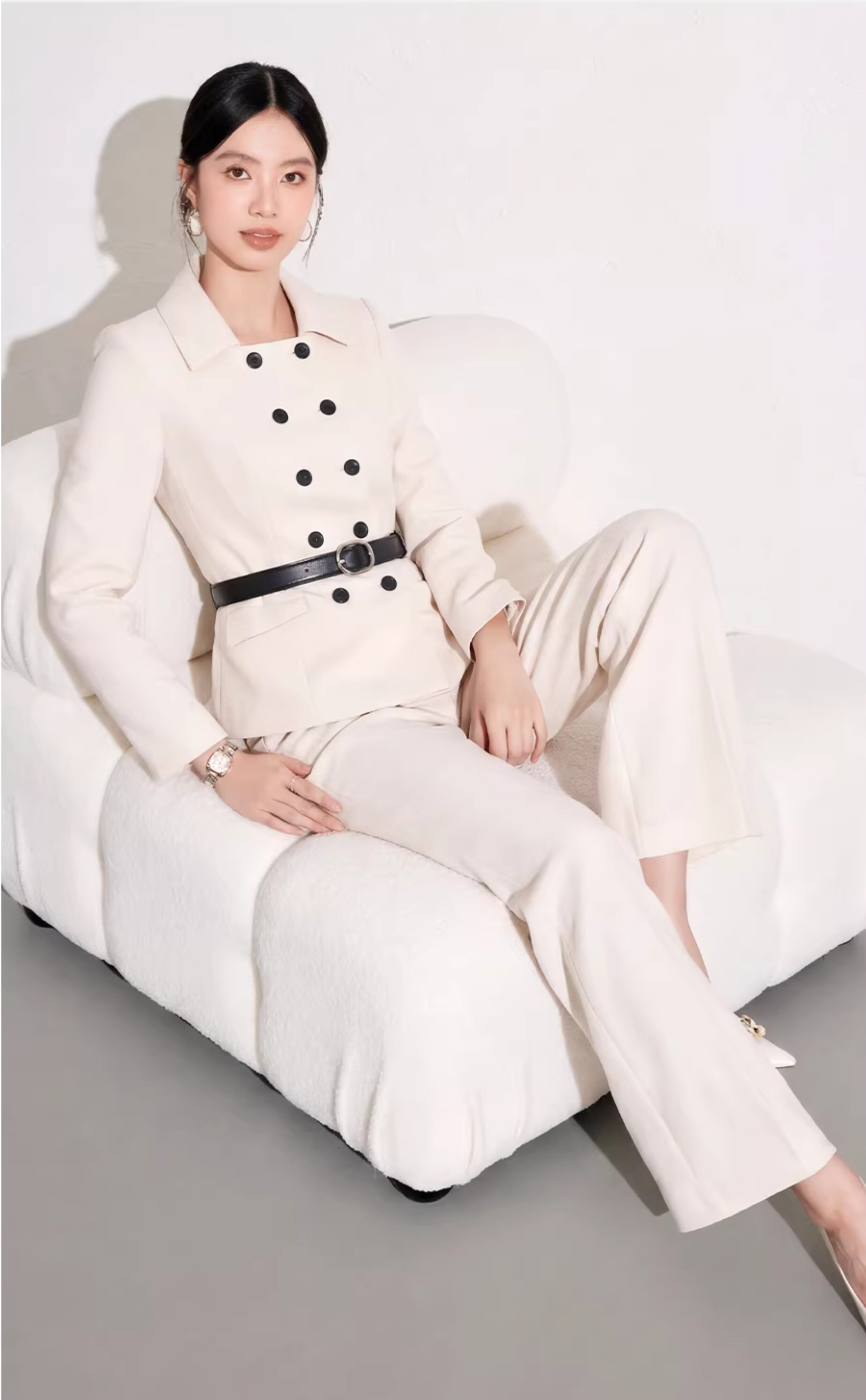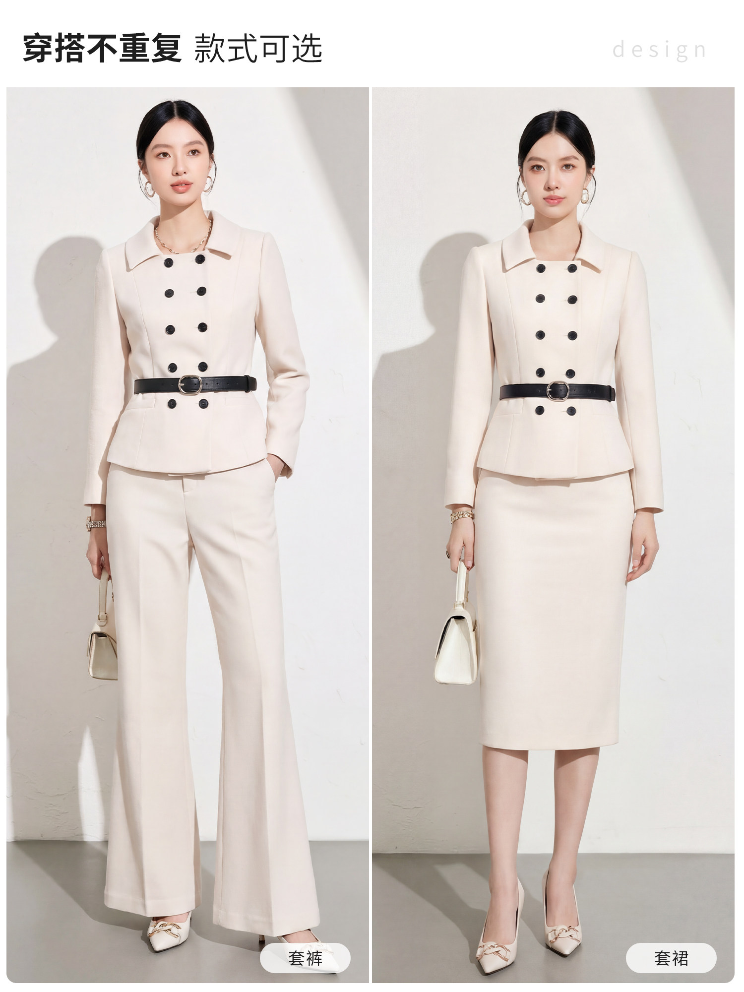 艾尚臣陈瑶同款米白色双排扣西装套装女收腰时尚两件套翻领冬季厚